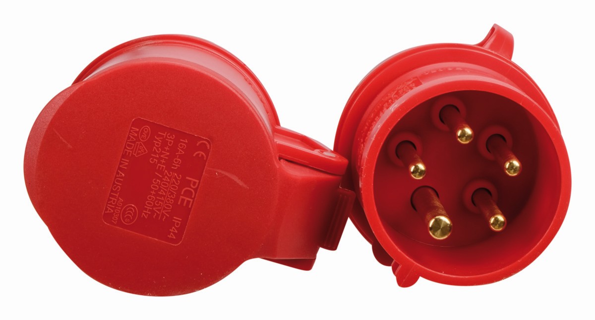 - 5 cables con una sección de 1,5 mm² (H07RN-F), enchufe europeo y toma trifásica.