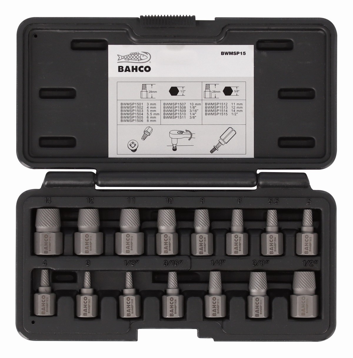 - Para tornillos de entre 3 y 14 mm (1/8” – 1/2")