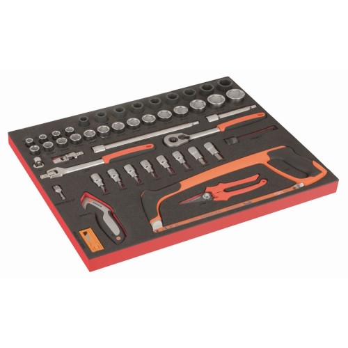 - Sistema de bandejas de foam para una organización limpia y ordenada de las herramientas.