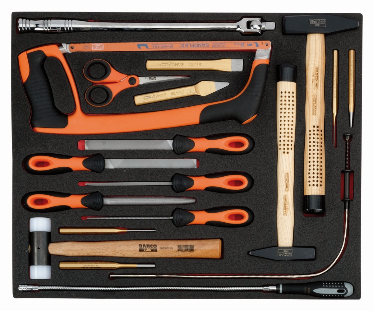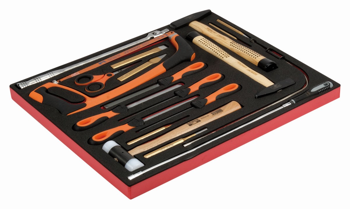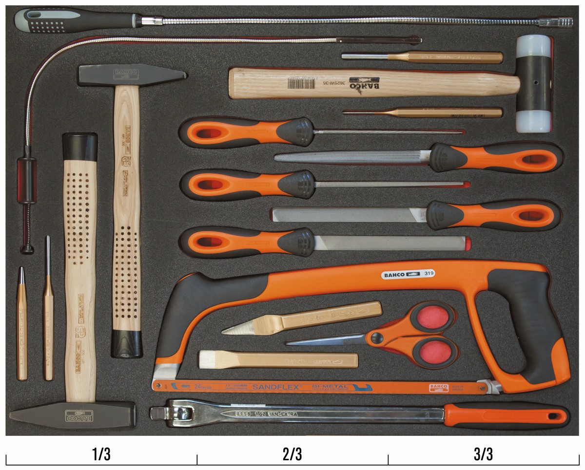 Juego de herramientas de golpeo y limas en bandeja de foam 3/3 Fit&Go, 19 piezas | FF1A12