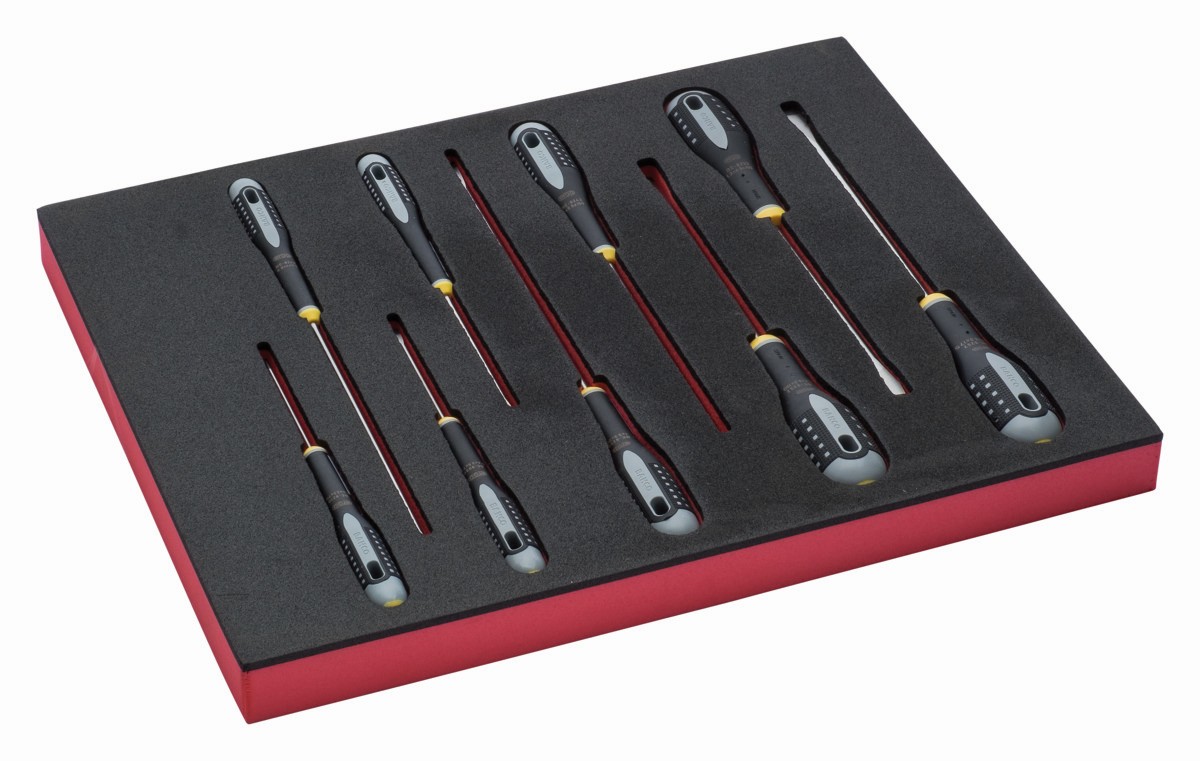 Juego de destornilladores ranurados en bandeja de foam 2/3 Fit&Go (9 piezas) | FF1F1001