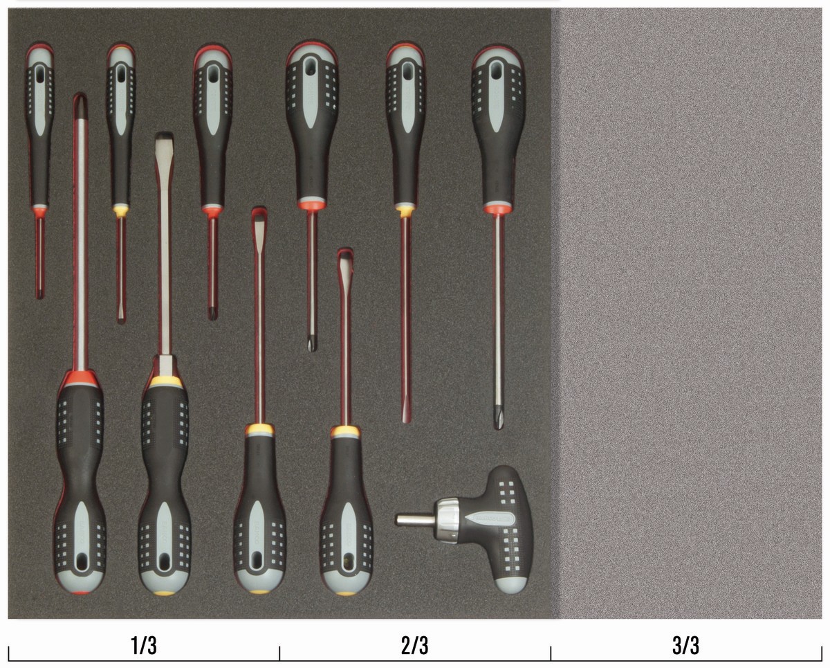 Juego de destornilladores ranurados y Phillips en bandeja de foam 2/3 Fit&Go (11 piezas) | FF1F1003