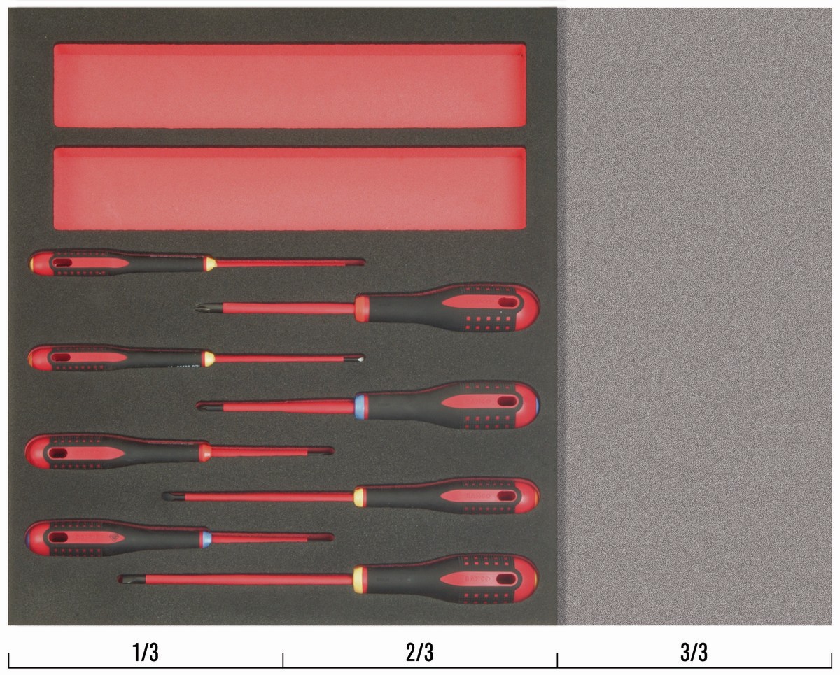 Juego de destornilladores ranurados, Phillips y Pozidriv aislados en bandeja de foam 2/3 Fit&Go (8 piezas) | FF1F1006