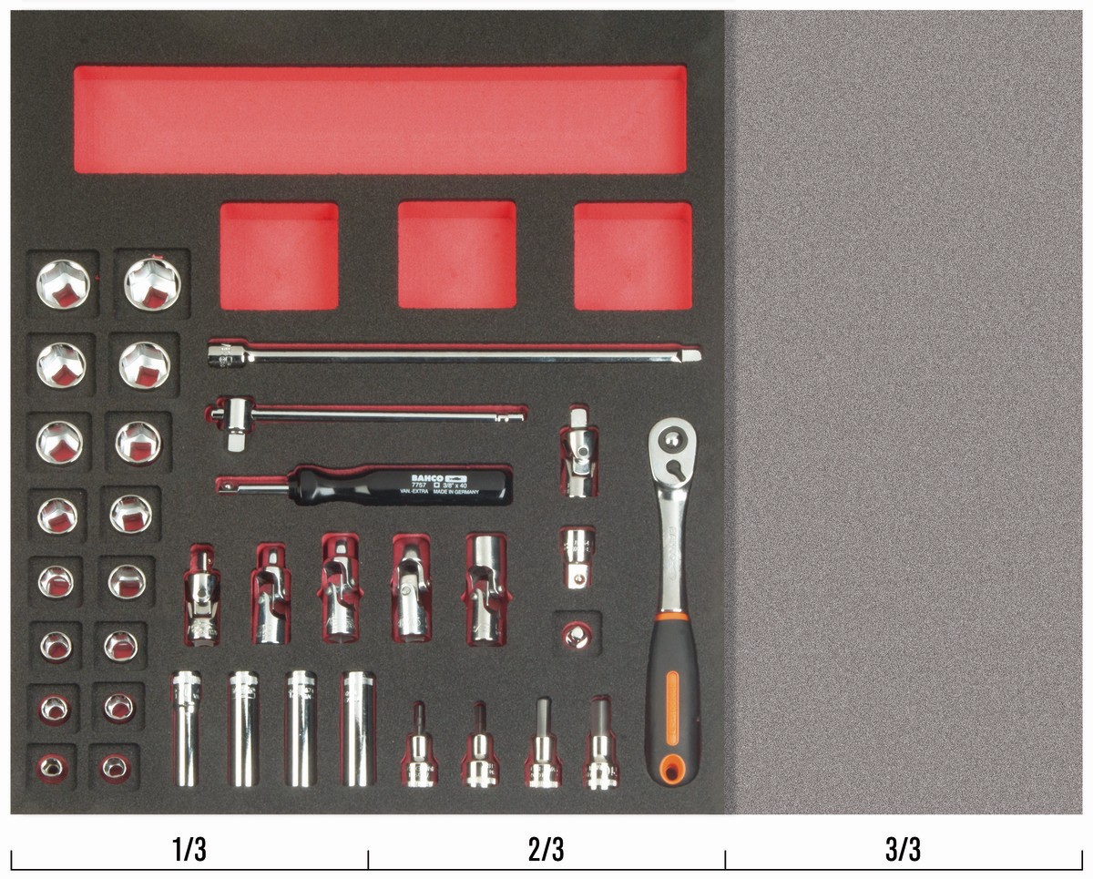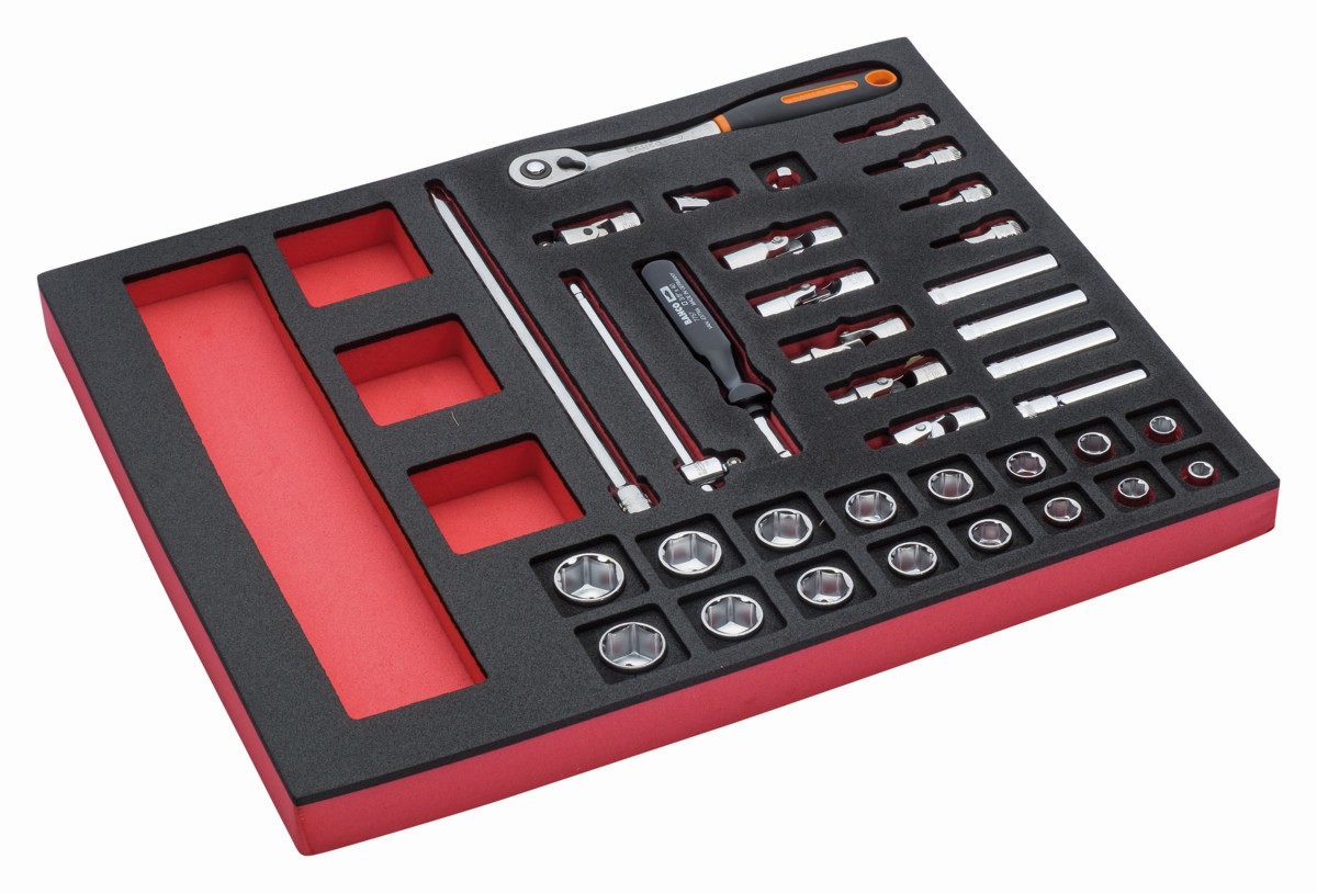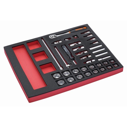 Juego de carraca de cabeza tipo pera y vasos de 3/8" en bandeja de foam 2/3 Fit&Go (36 piezas) | FF1F2101