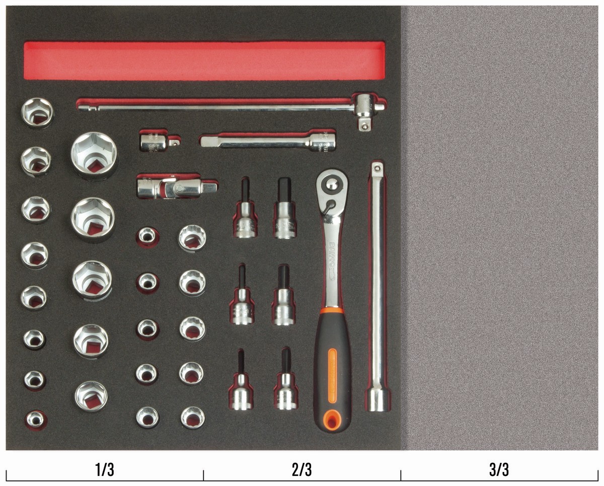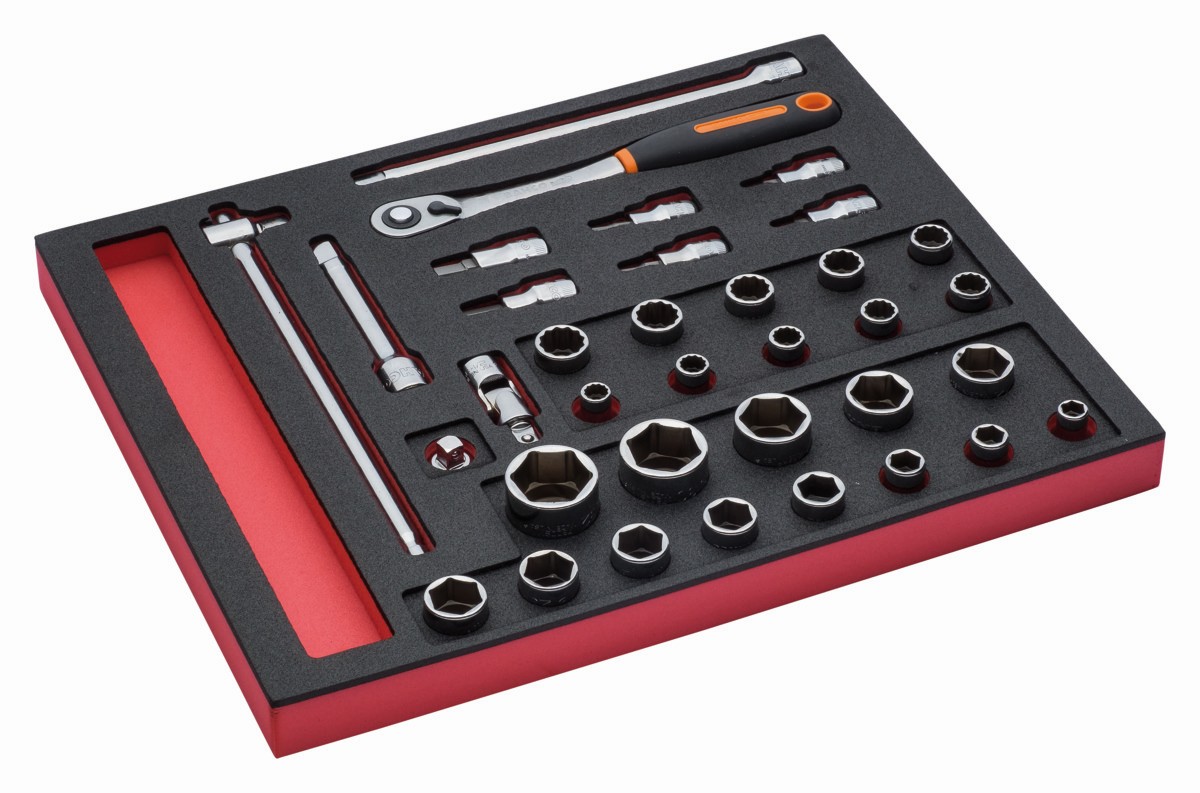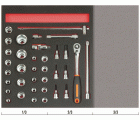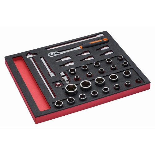 Juego de carraca de cabeza redonda y vasos de 1/2" en bandeja de foam 2/3 Fit&Go (35 piezas) | FF1F2201