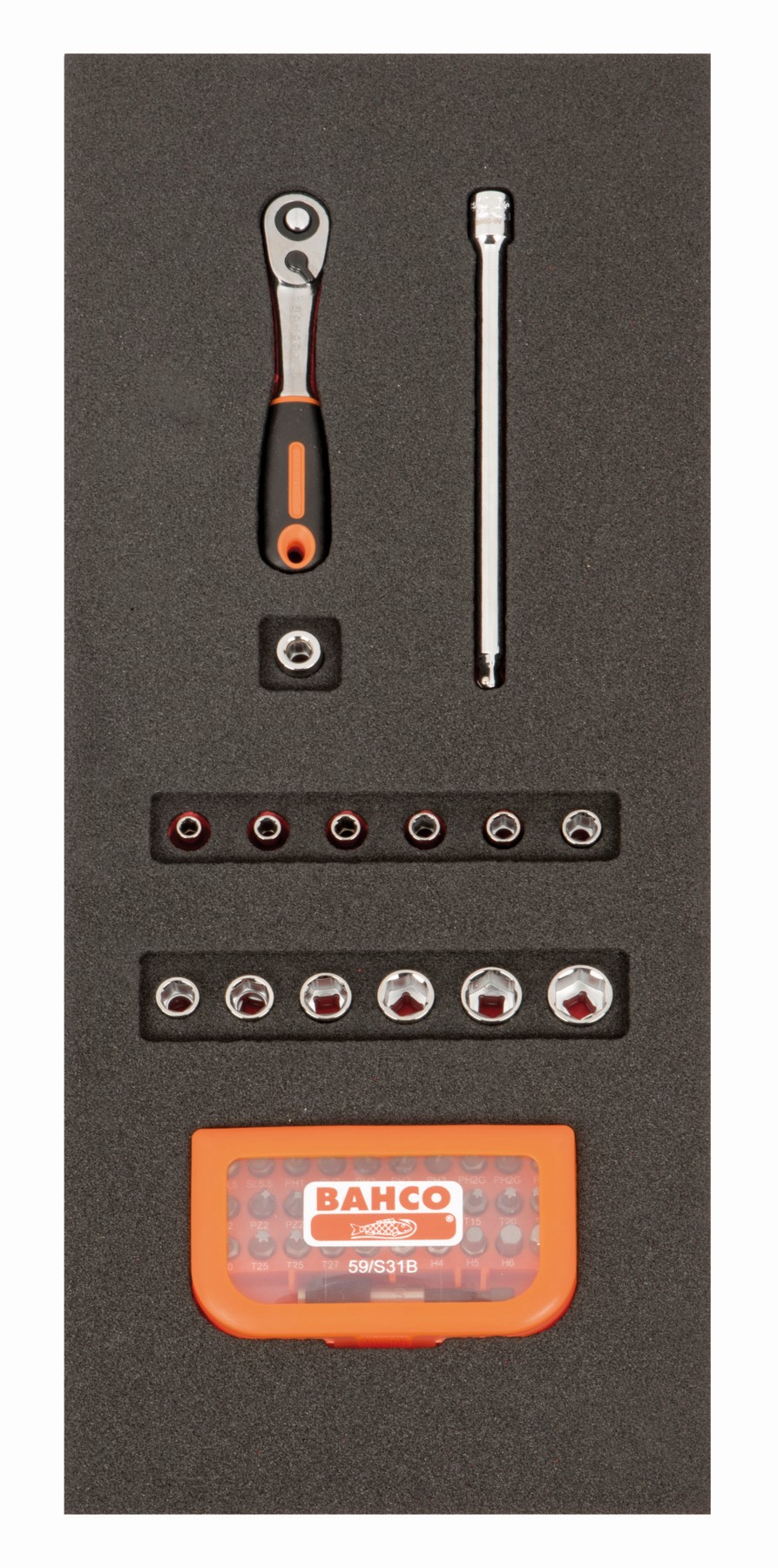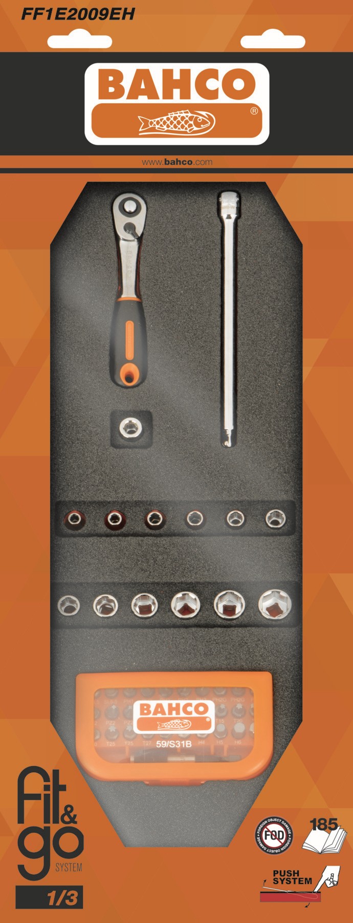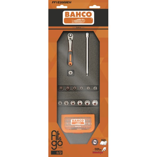 BAHCO Juego de vasos de 1/4" y puntas en bandeja de foam 1/3 Fit&Go (46 piezas, blíster) | FF1E2009EH