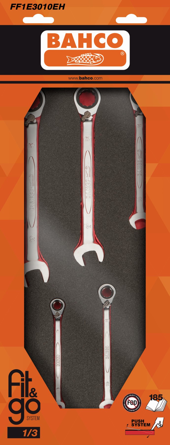 BAHCO Juego de llaves combinadas en bandeja de foam 1/3 Fit&Go (11 piezas, blíster) | FF1E3009EH