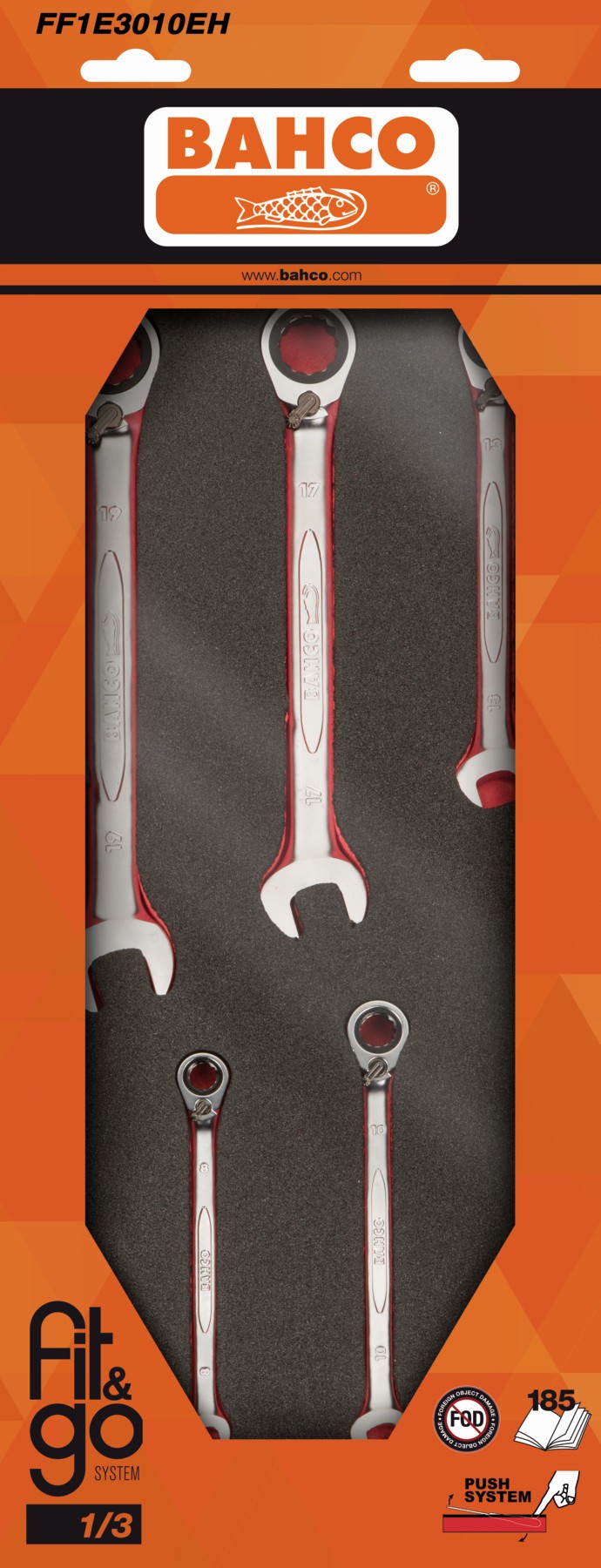 Juego de llaves combinadas con carraca 1RM en bandeja de foam 1/3 Fit&Go (5 piezas, blíster) | FF1E3010EH