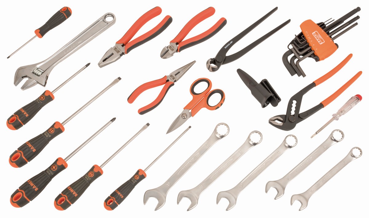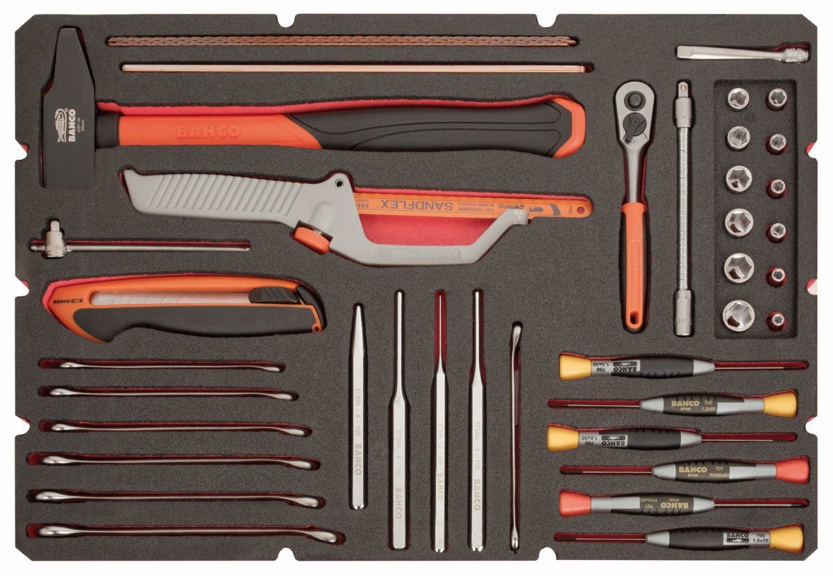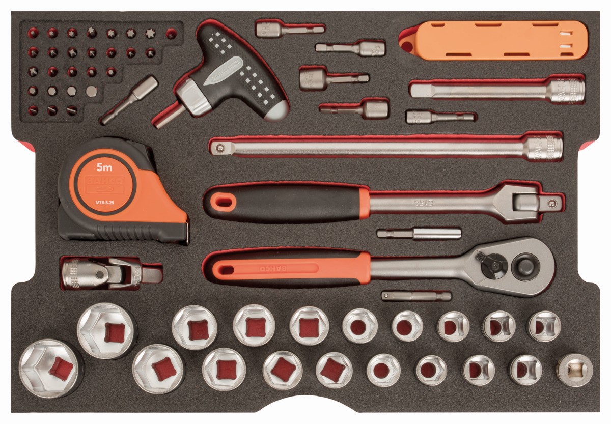 - Gran variedad de herramientas incluidas: llaves combinadas, destornilladores, zócalos HEX de 1/4" y 1/2", herramientas de golpeo y corte, alicates, brocas