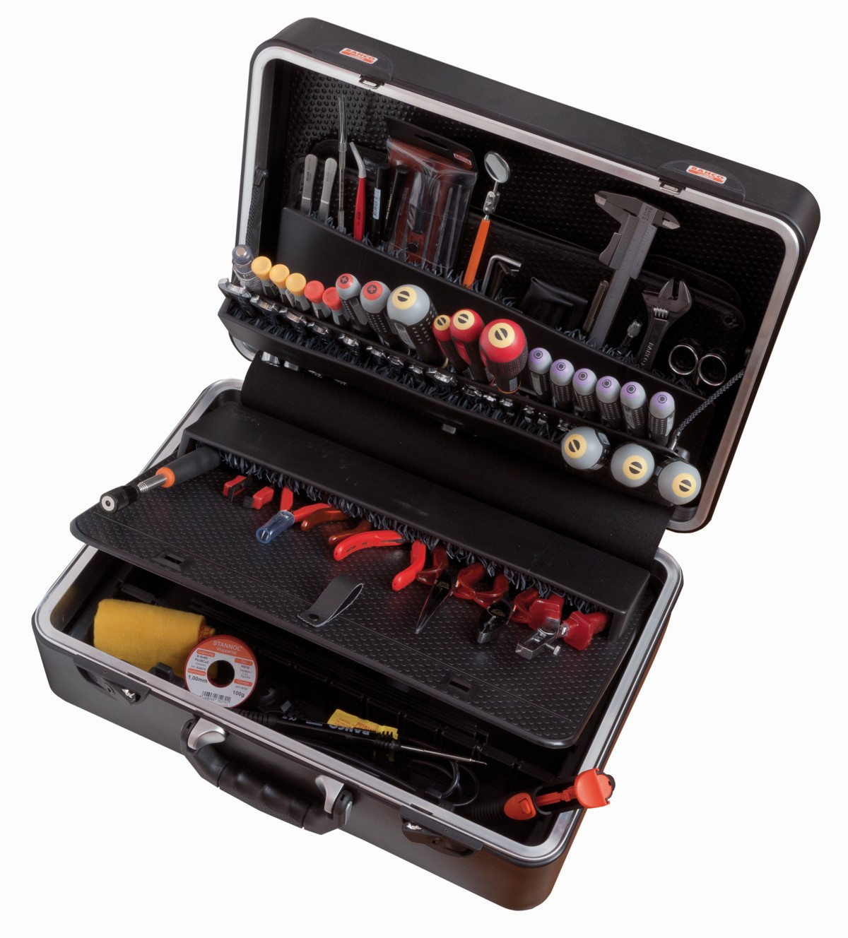 - Maleta rígida con un juego de herramientas para trabajos en electrónica.