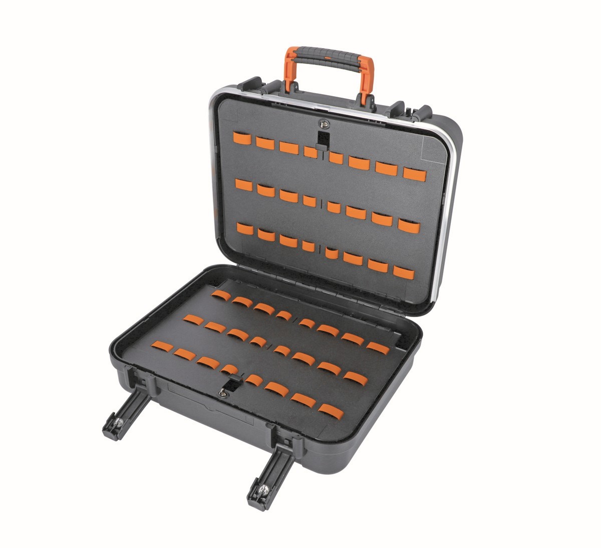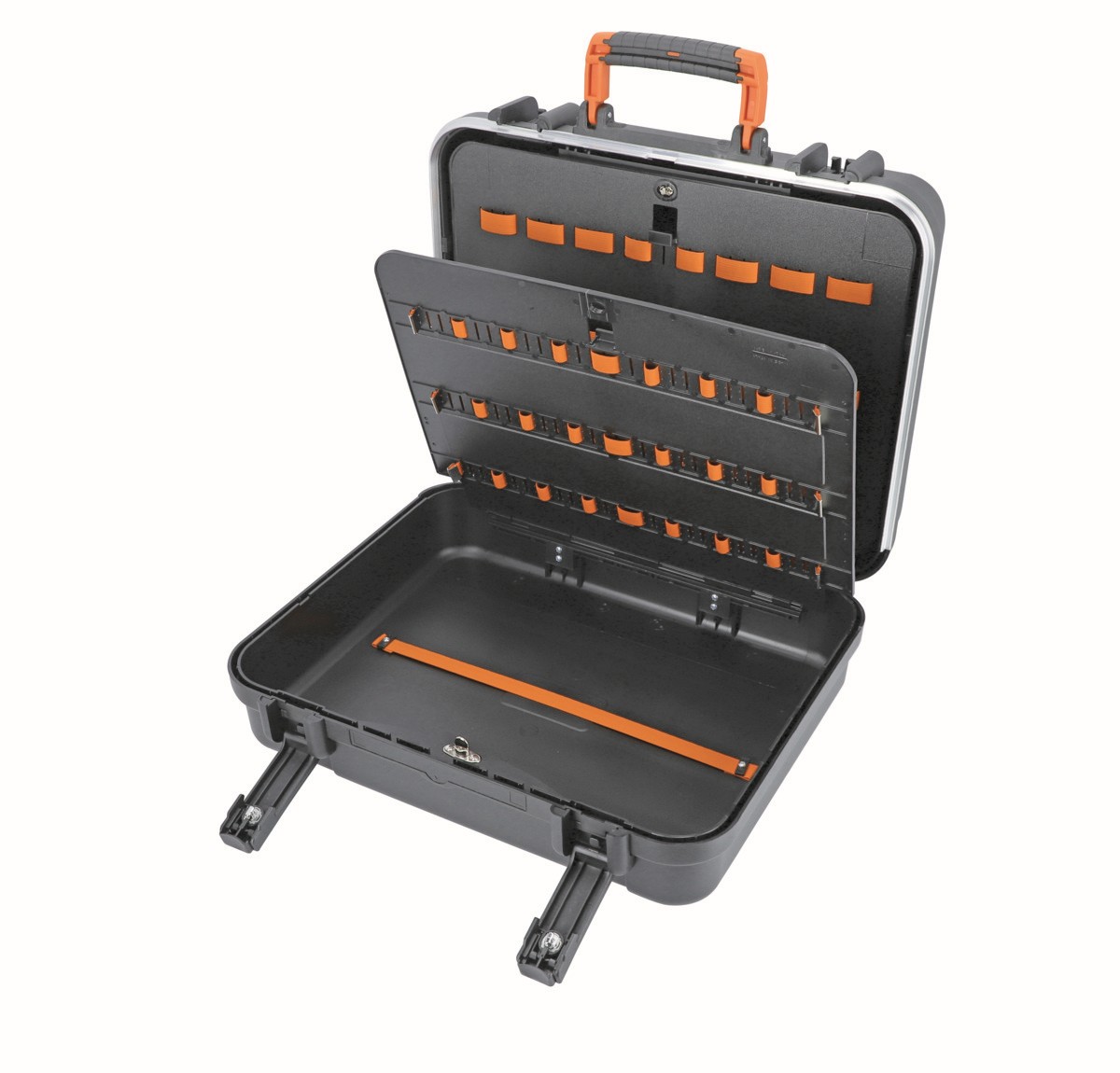 - 1 panel interior para herramientas con cintas elásticas en un lateral de la tapa.