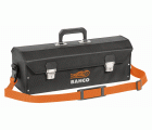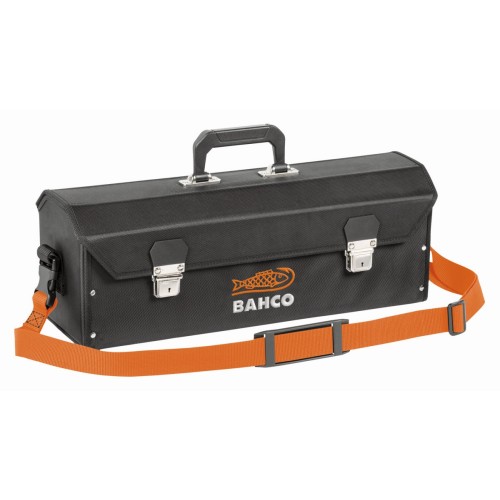 - Dos correas de sujeción de cuero en lugar de cierres metálicos para que el usuario pueda ajustar la bolsa para herramientas de mayor longitud que la caja
