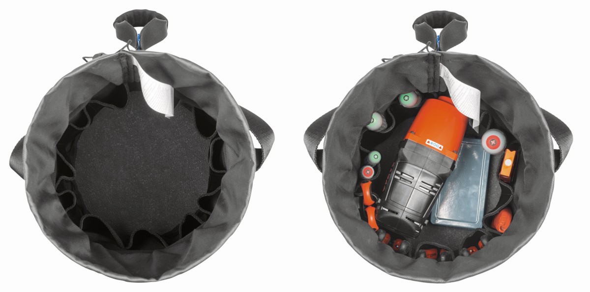• Cuello extensible y cordón industrial de sujeción para contener las herramientas de forma segura