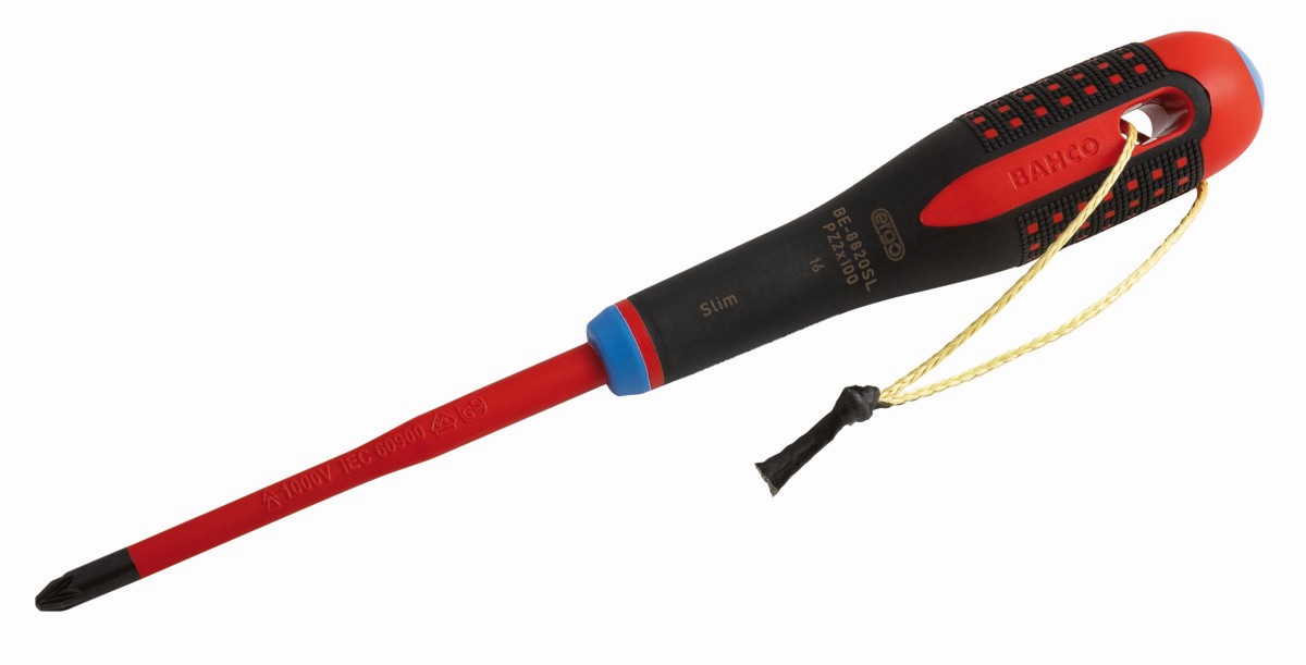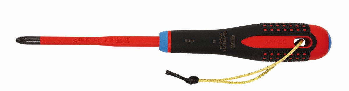 Destornilladores Pozidriv aislados VDE y delgados ERGO™ con mango de tres componentes y cordón de Kevlar | TAHBE-8820SL