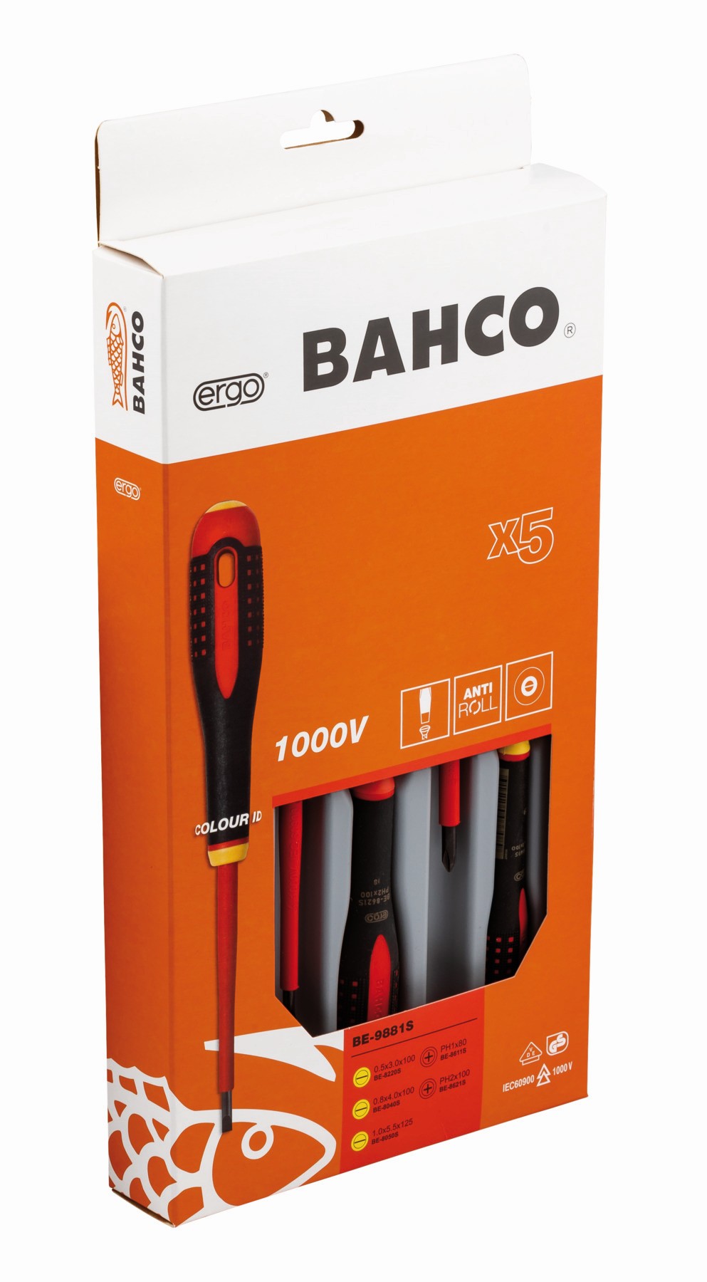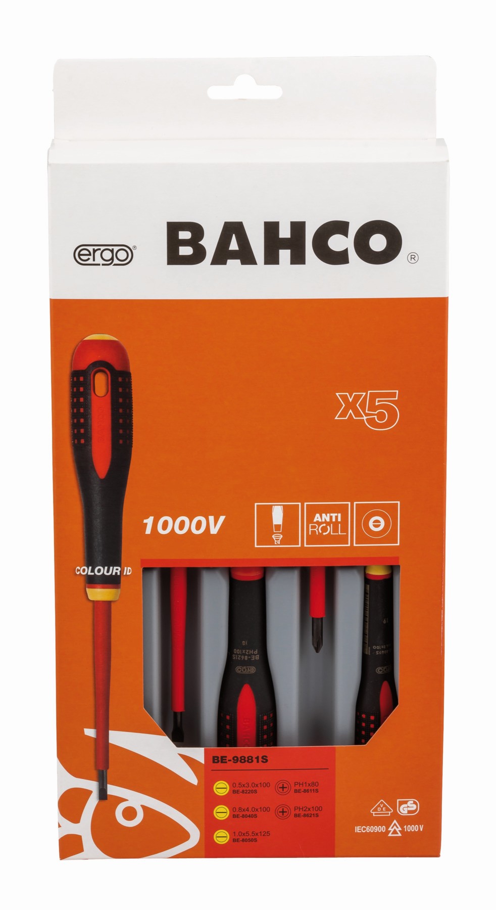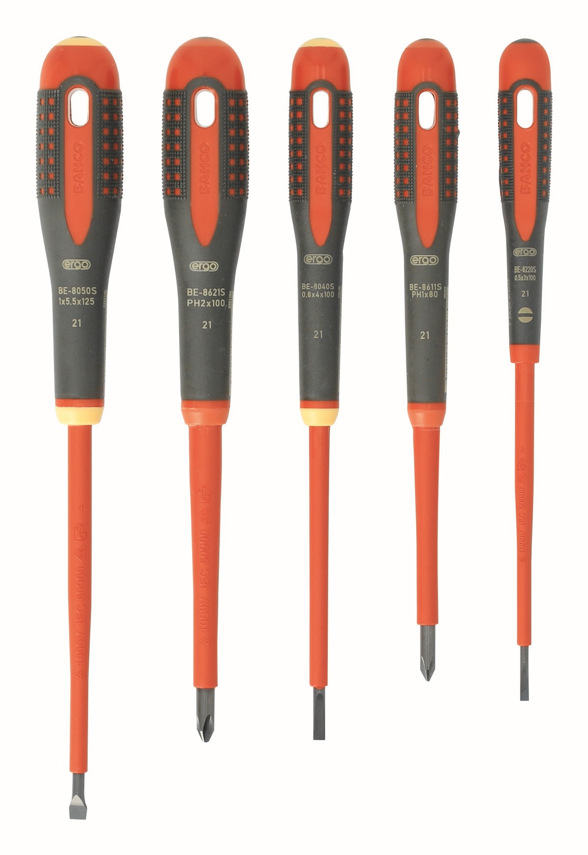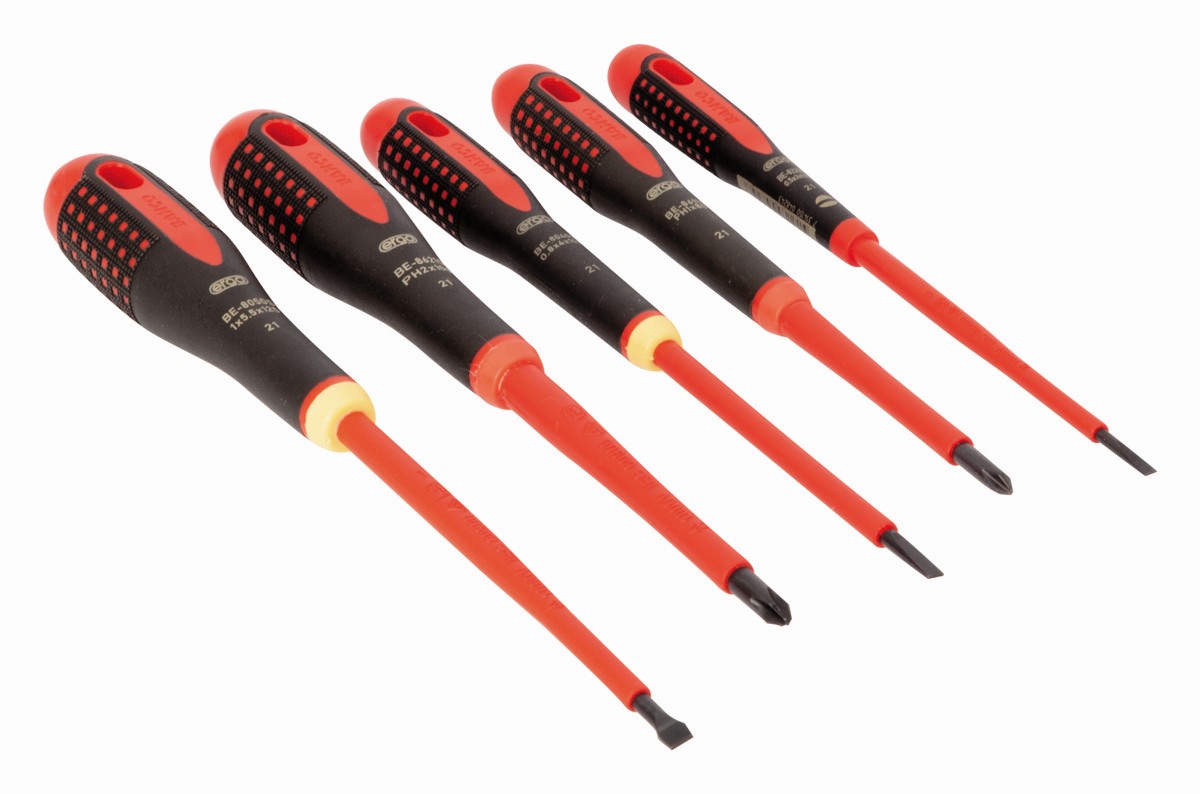 Juego de destornilladores Phillips y ranurados aislados VDE ERGO™ con mango de tres componentes - cinco unidades | BE-9881S