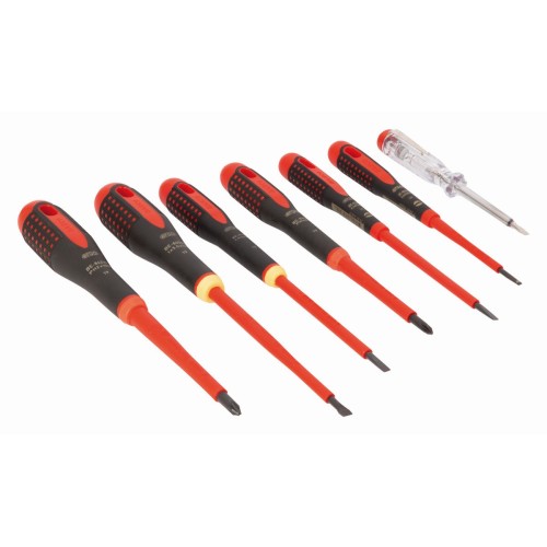 Juego de destornilladores ranurados y Phillips aislados VDE ERGO™ con mango de tres componentes (7 piezas) | BE-9887S