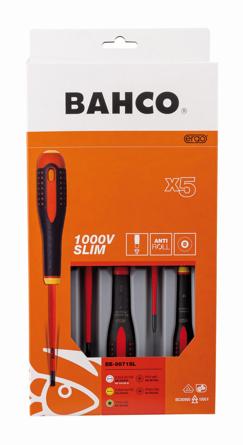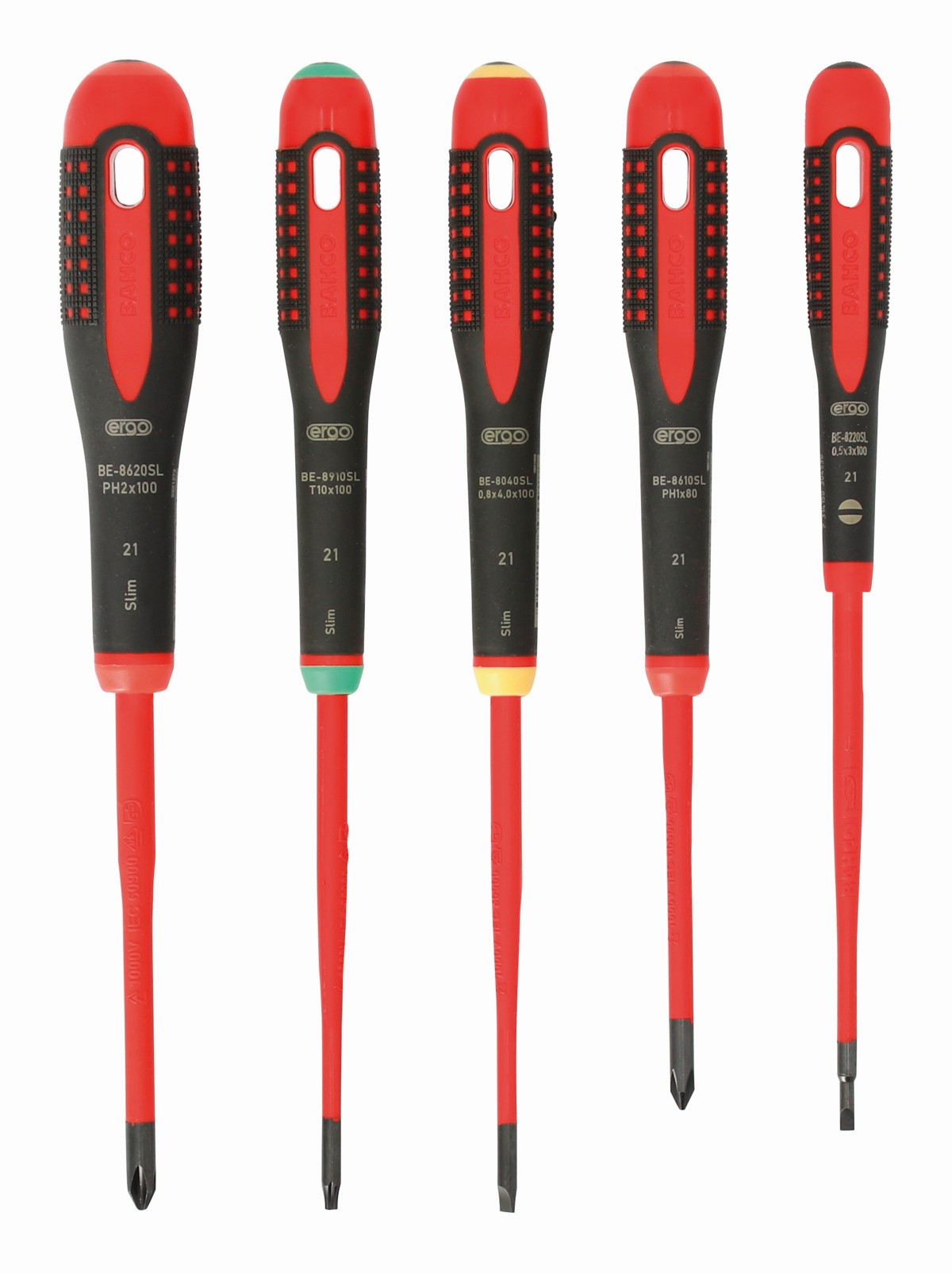 Juego de destornilladores ranurados, Phillips y TORX® aislados y delgados VDE ERGO™ con mango de tres componentes (5 piezas) | BE-9871SL