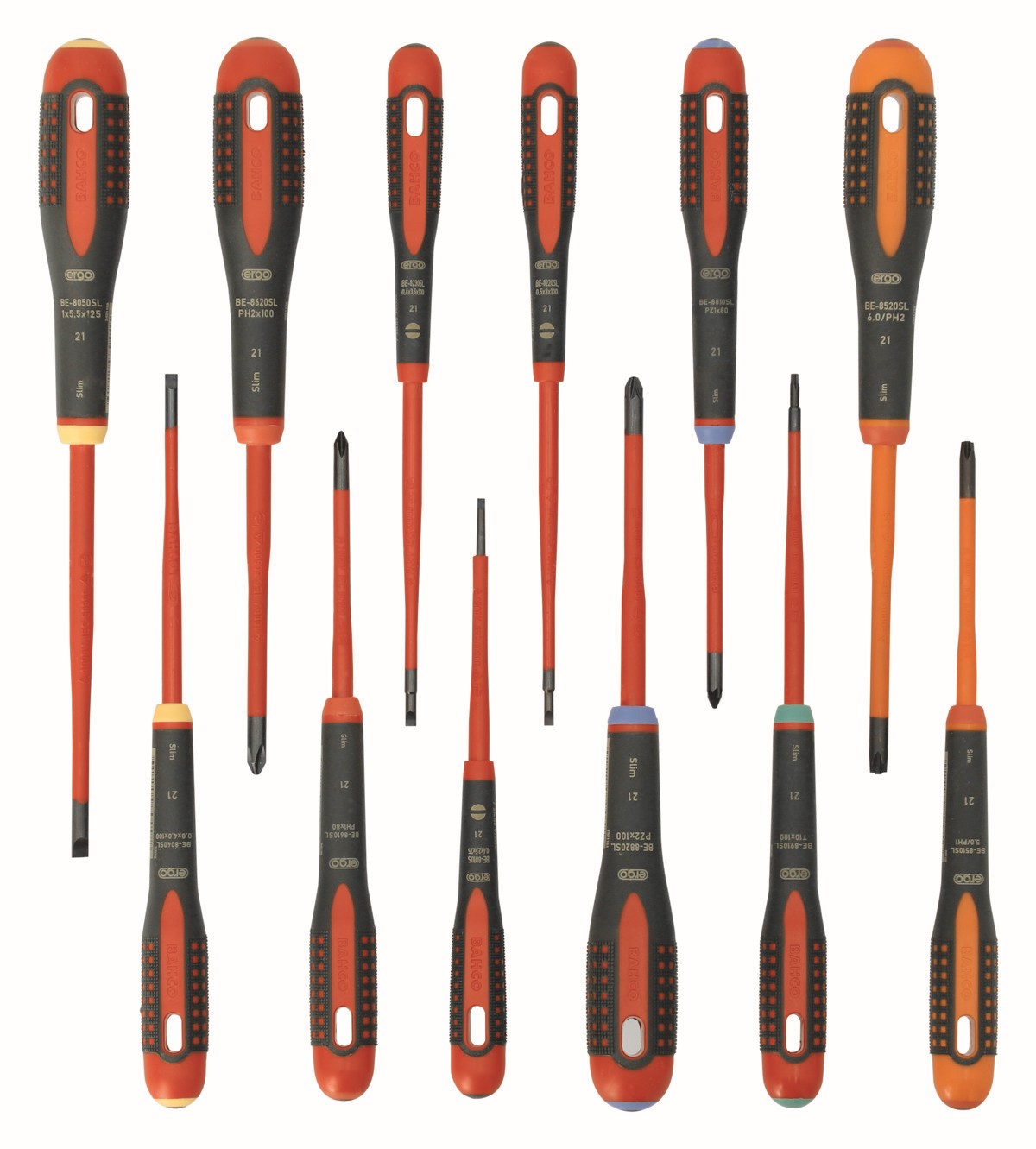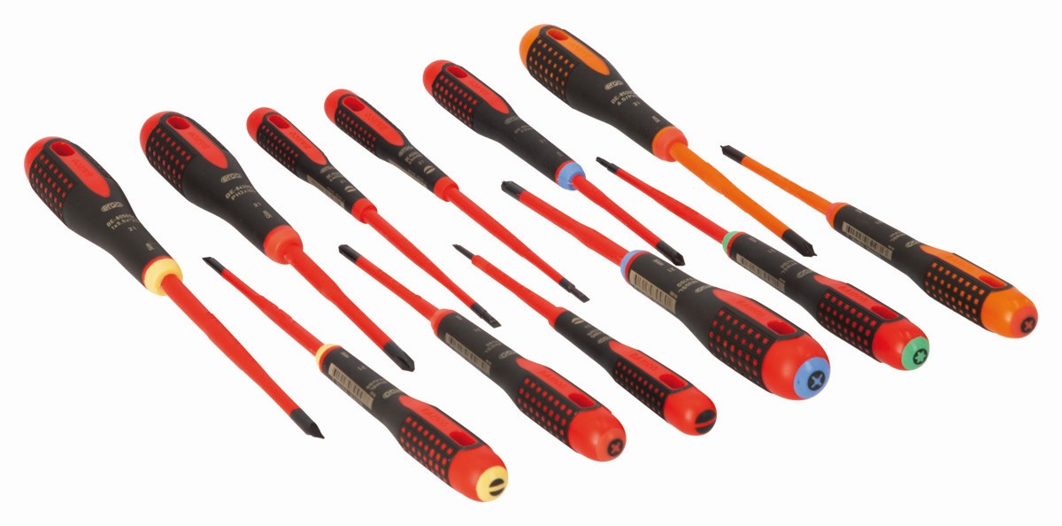 Juego de destornilladores aislados VDE Slim ERGO™ con mango de tres componentes 12 mm - 12 unidades | BE-9878SL