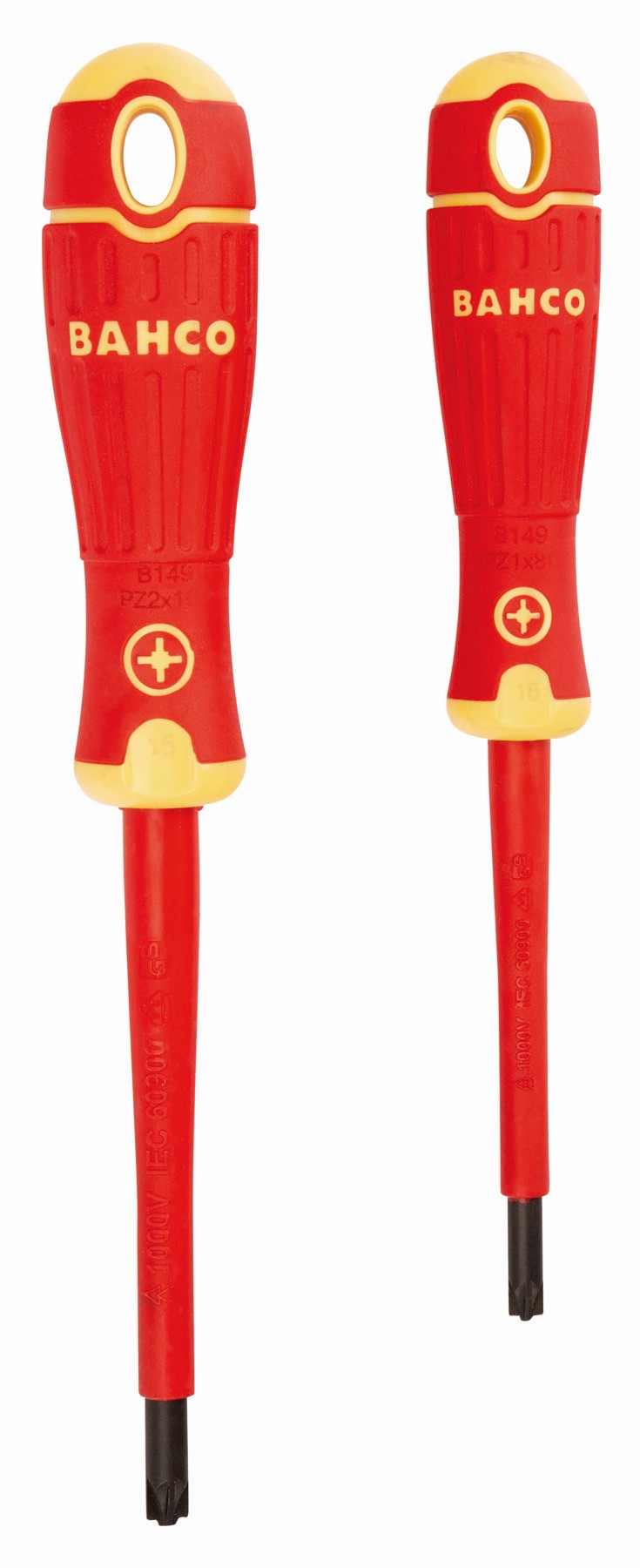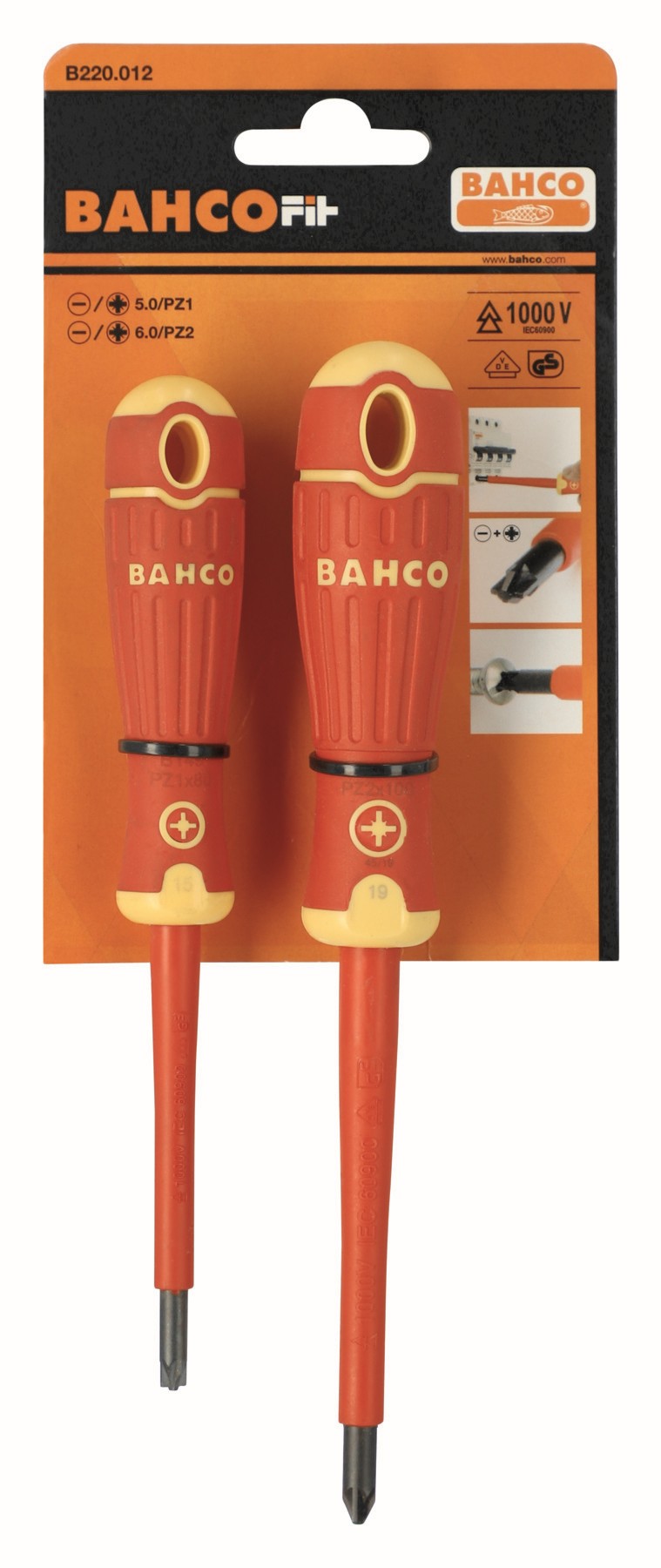 Juego de destornilladores aislados VDE de punta Combi ranurada y Pozidriv BahcoFit con mango multicomponente (2 piezas) | B220.012