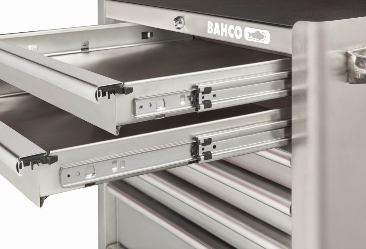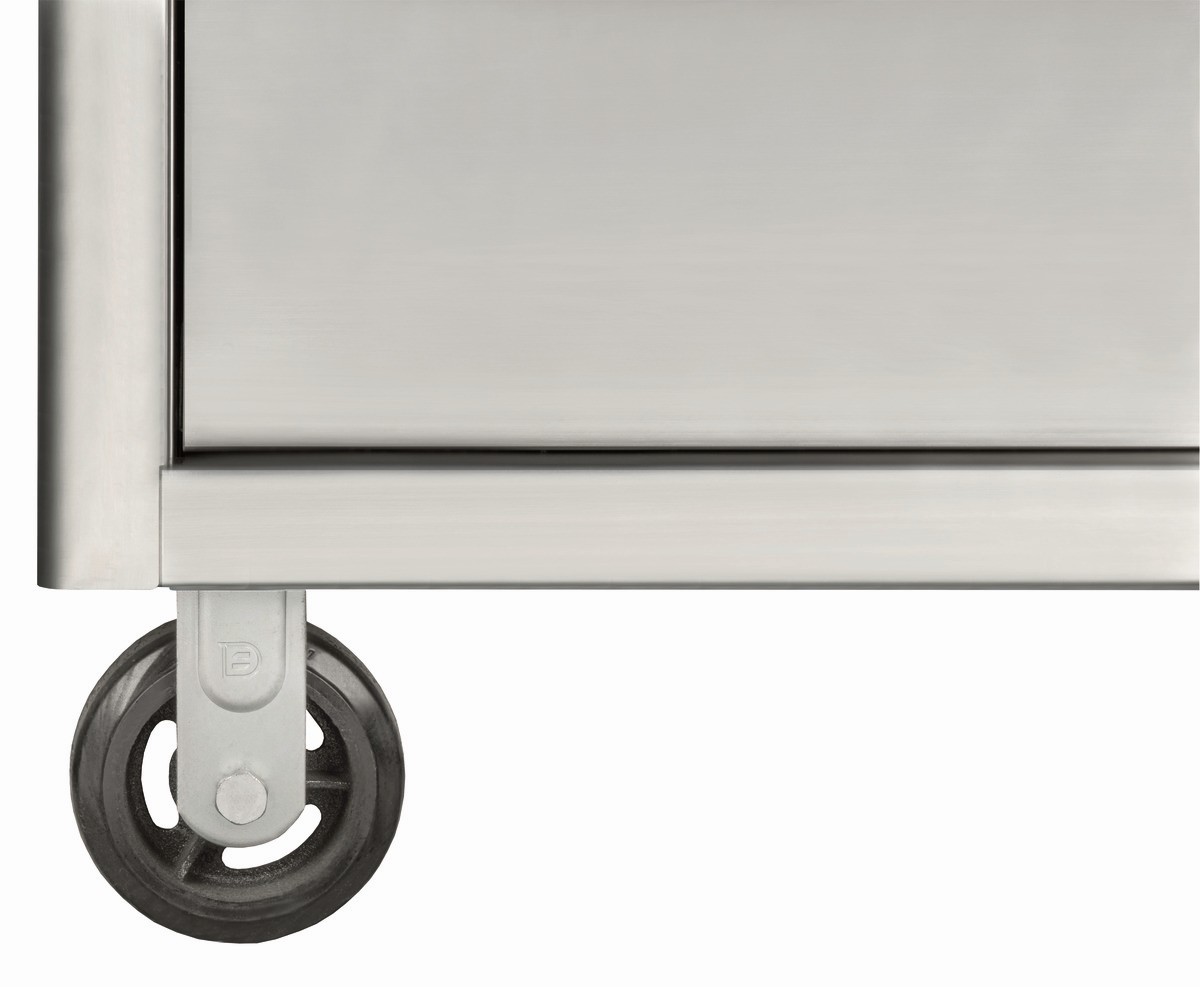 - El sistema Lock & Go! seguro e inteligente impide que los cajones de acero inoxidable se abran al mover el carro.