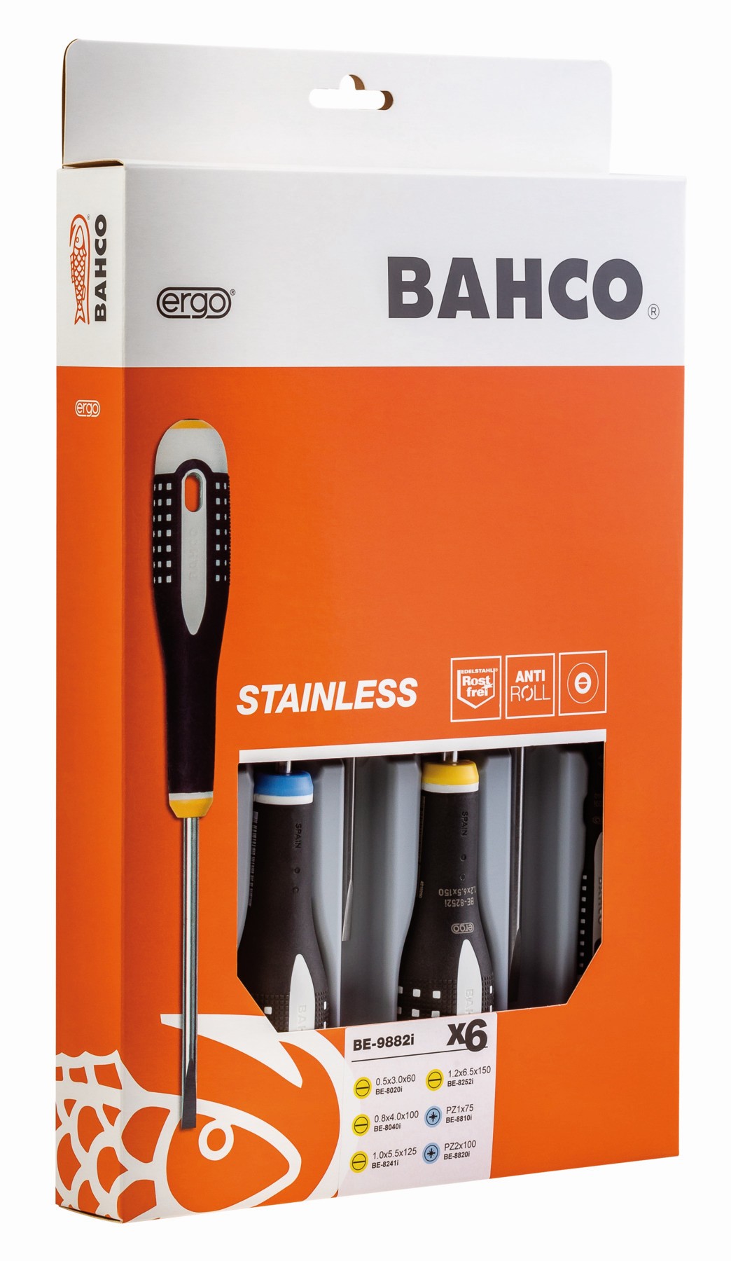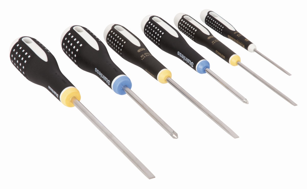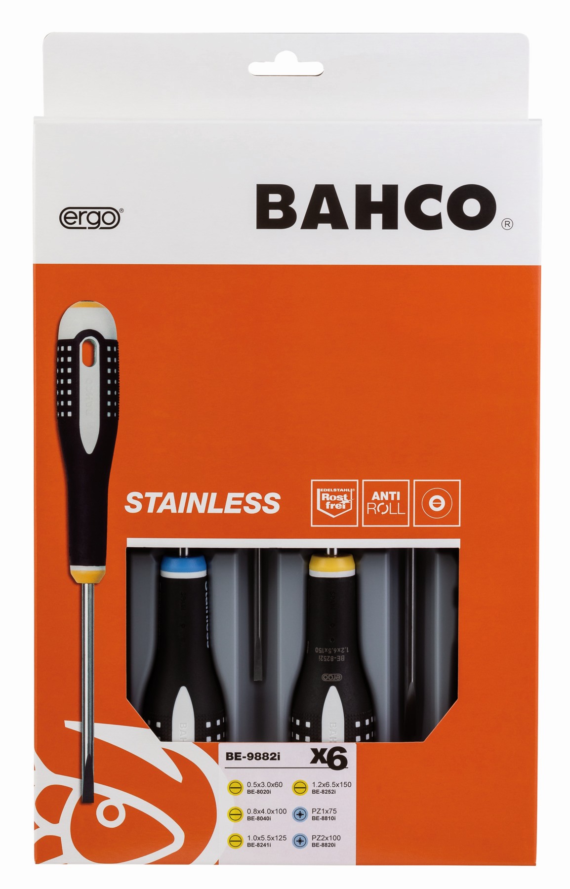 Juego de destornilladores ranurados/Pozidriv de acero inoxidable ERGO™: 6 piezas | BE-9882i