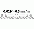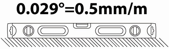 - Cuatro líneas en cada lado del frasco plano; el grueso es de punto cero; cada línea proporciona 1 mm/m extra para hacer pendientes