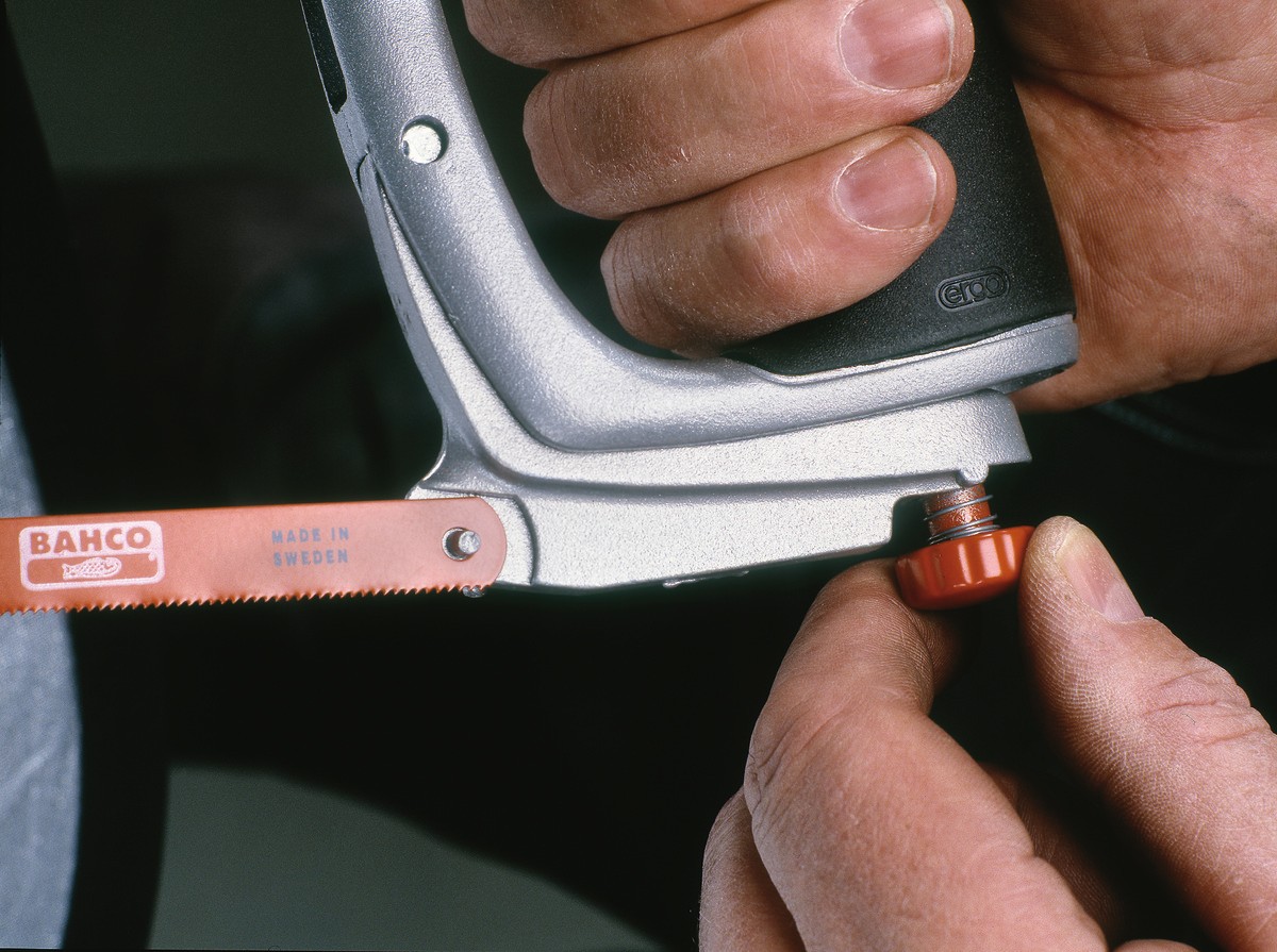 - Dispone de un mecanismo de tensión de la hoja accionado por muelle, para un fácil cambio de hoja