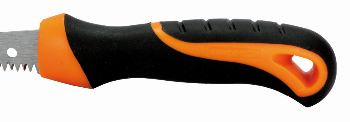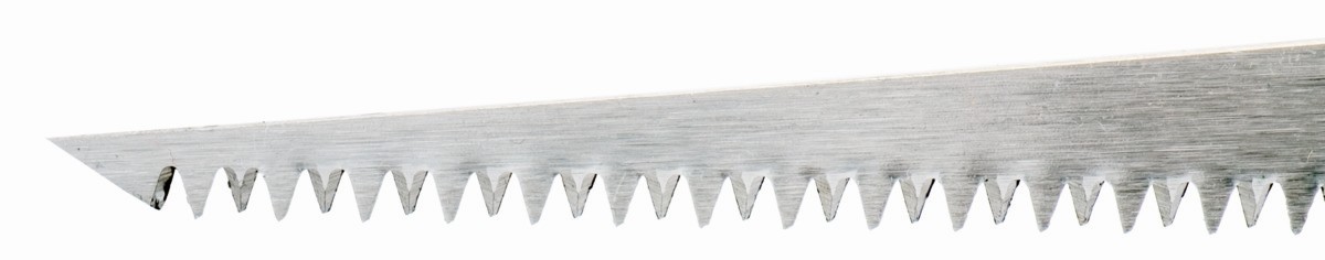 - La hoja robusta, con dientes de triple filo, termina en una punta afilada, que junto al cómodo mango bi-componente, lo hace perfecto para utilizarlo para penetración