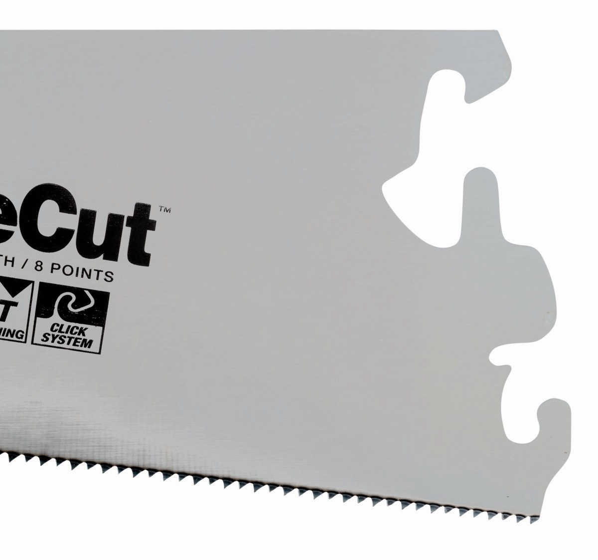 - Fácil y rápida colocación de la hoja en el mango, mediante el sistema patentado Click.