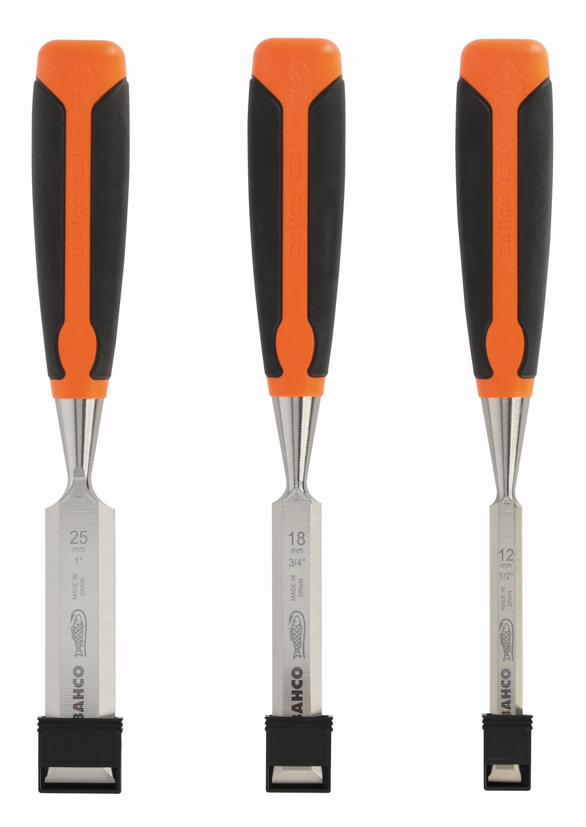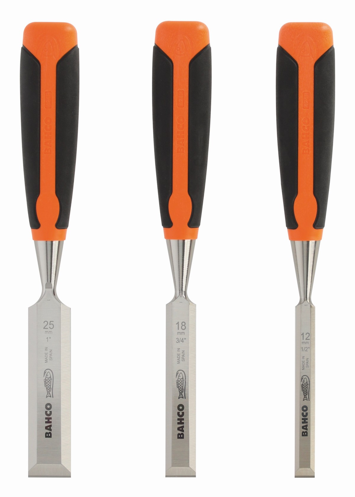 BAHCO Juego de formones con mango de goma (3 piezas / caja de cartón) | 424P-S3-EUR
