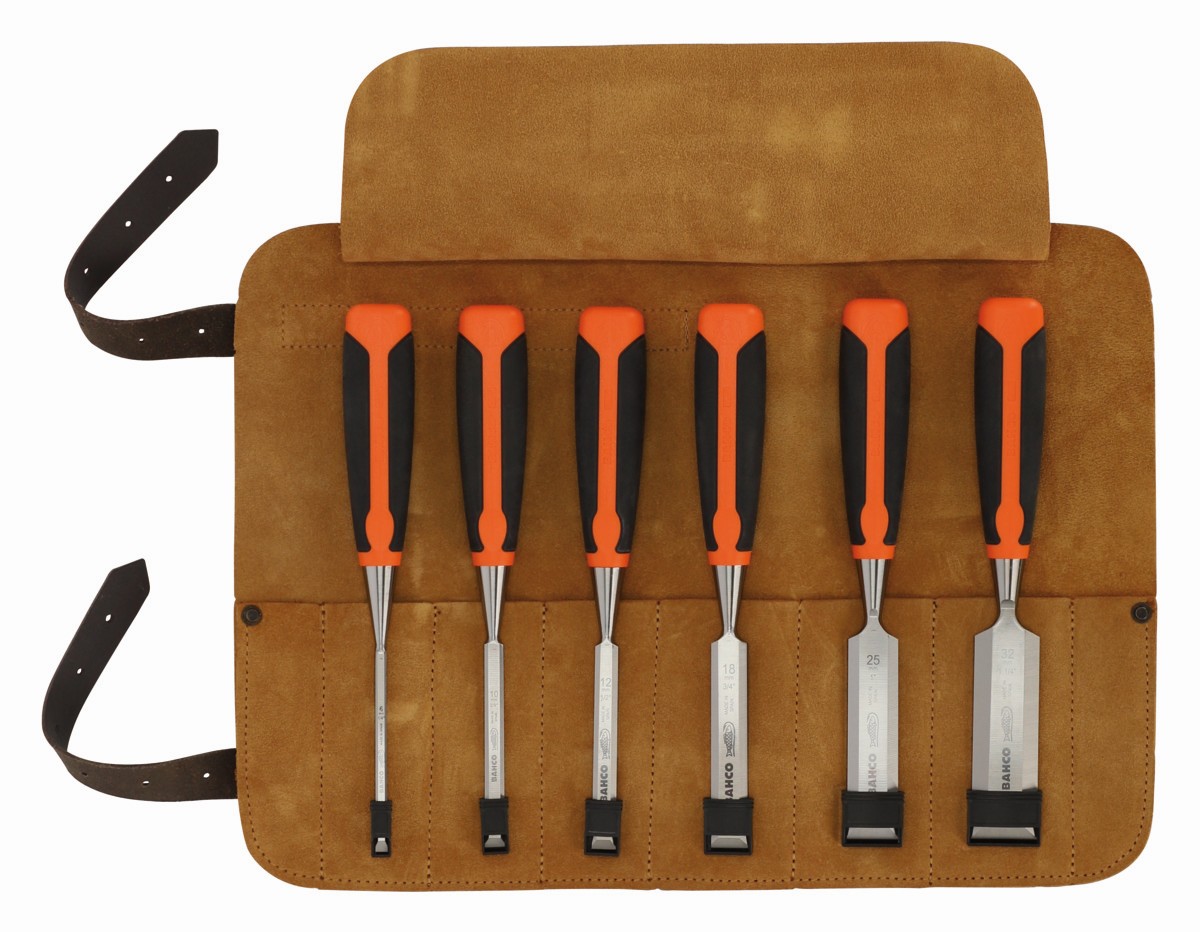 El juego incluye formones de 6, 10, 12, 18, 25 y 32 mm.