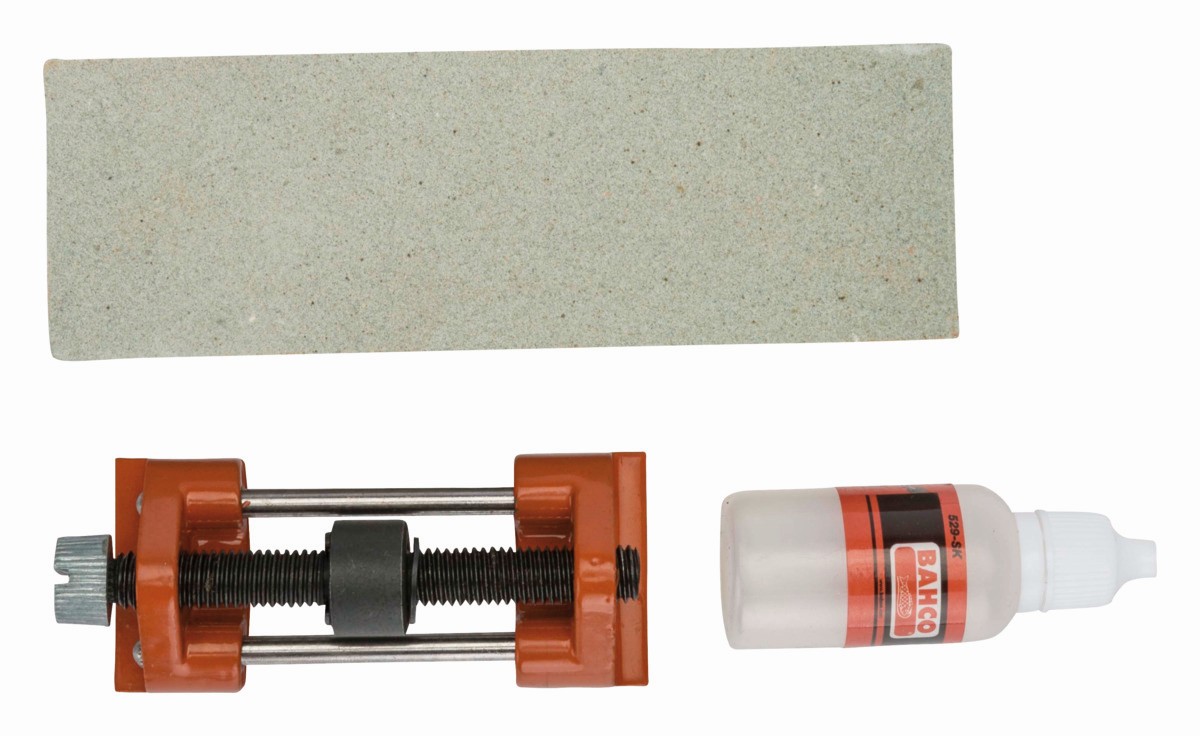 - El aceite de bruñido (botella de 20 ml) proporciona la lubricación necesaria durante el proceso de afilado