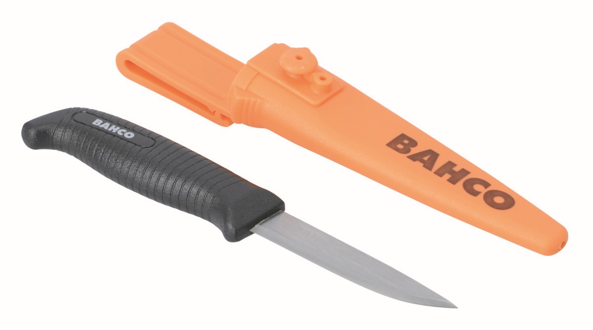 - Funda para llevar en el cinturón y botón de doble cuchilla para sujetar otra cuchilla