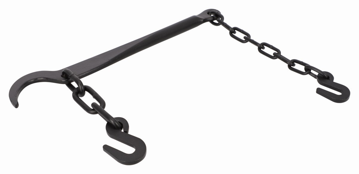 - Palanca de acero forjado macizo, completa con cadena y ganchos.