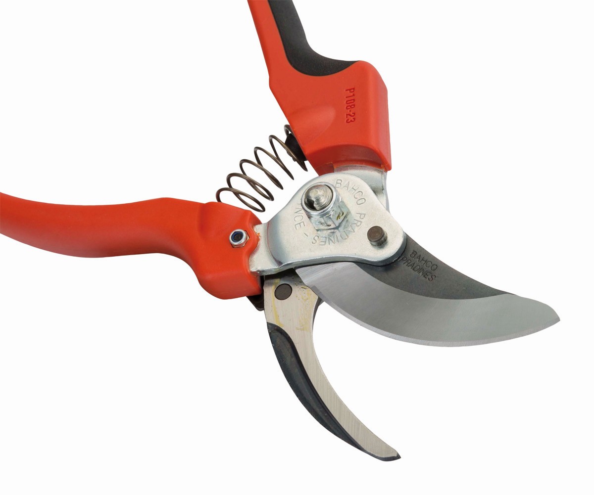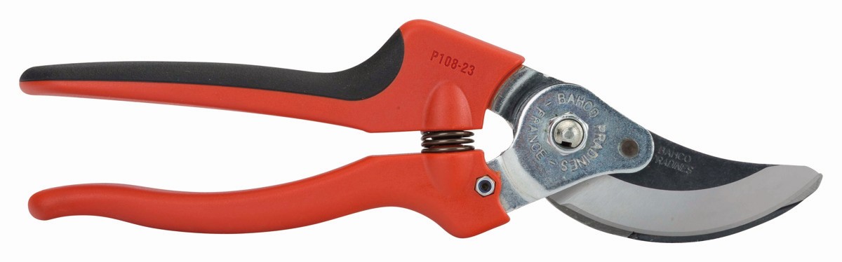 Tijeras de podar de una mano de corte deslizante con mango de composite de agarre suave y cabezal de corte estrecho | P108