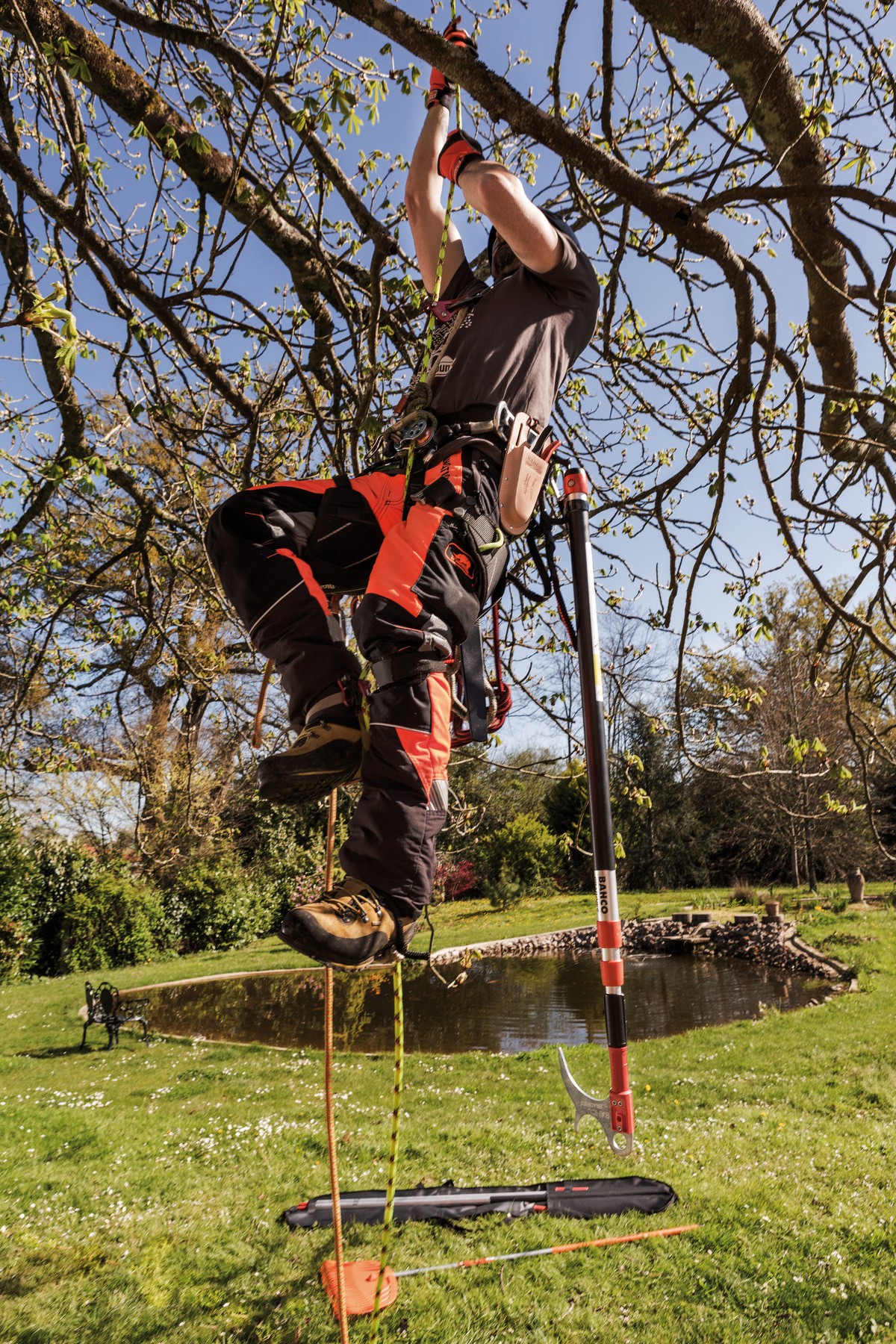 • Podas más seguras en altura gracias a las ligeras pértigas telescópicas cortas de aluminio