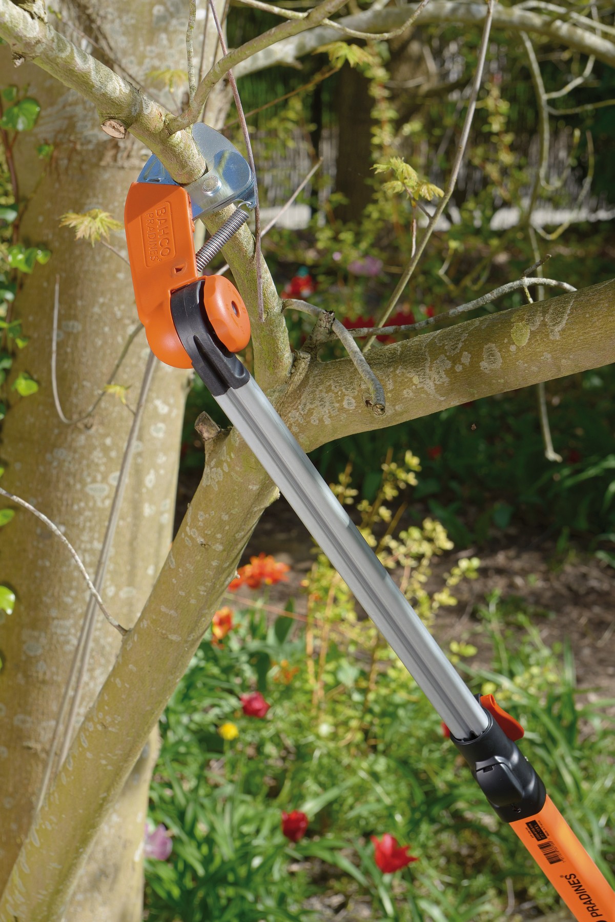 - Tijeras de podar de altura telescópicas de aluminio para un corte sencillo, preciso y seguro de ramas con una altura de hasta 6 m.