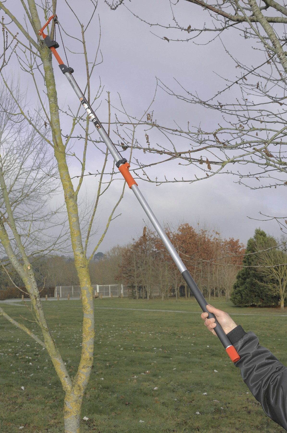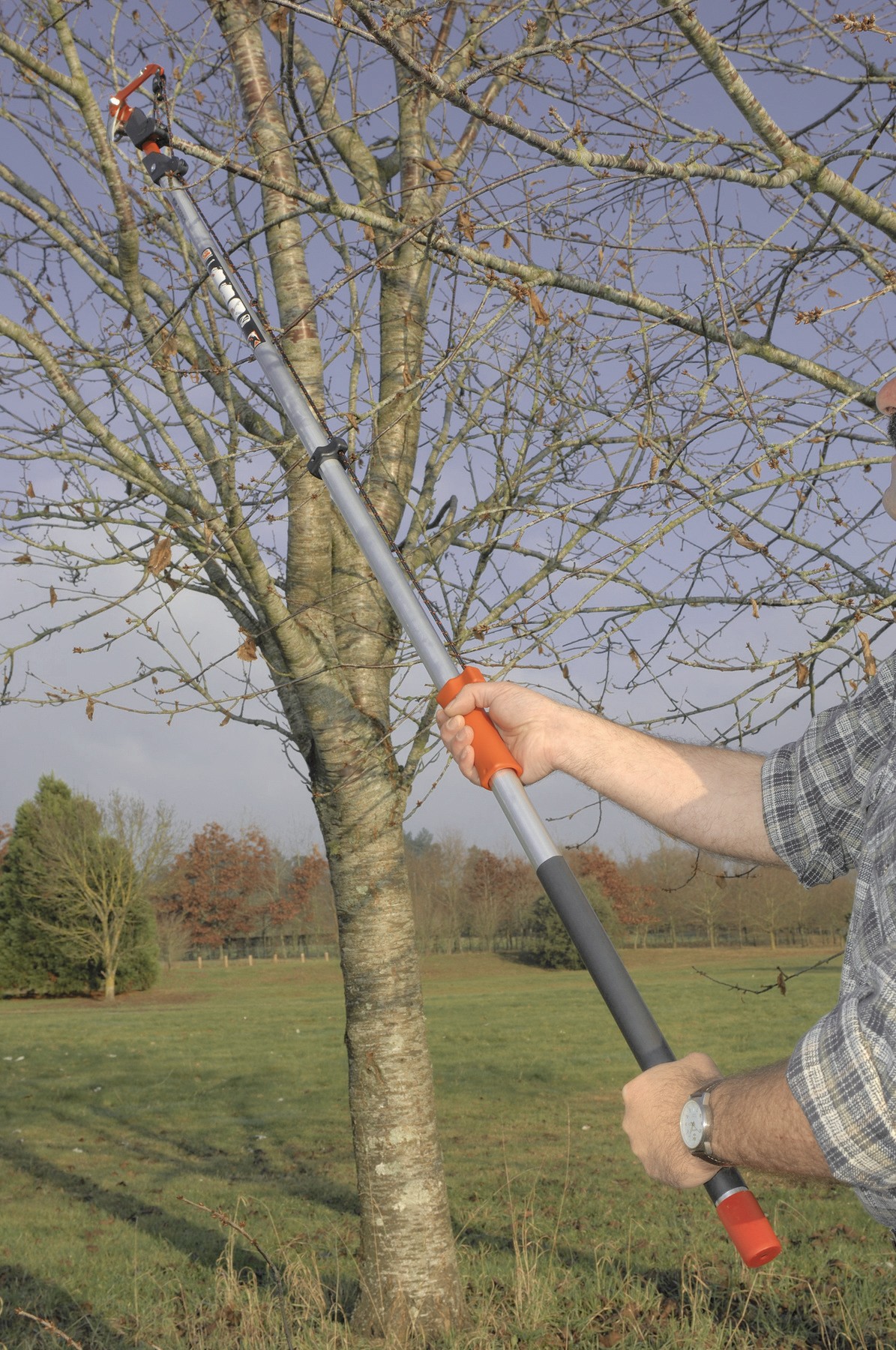 - Poda en altura más segura gracias a las pértigas de aluminio ligeras de longitud fija.