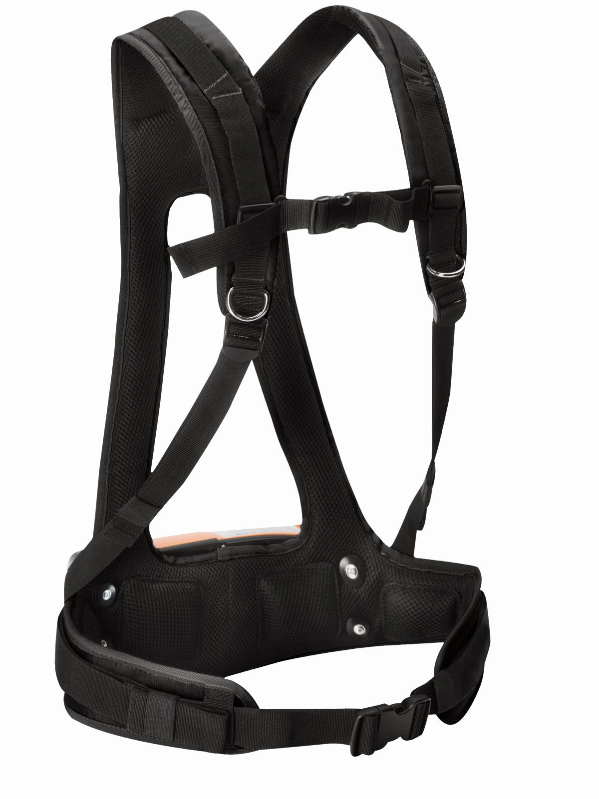 • Arnés cómodo y totalmente ajustable para una distribución del peso uniforme