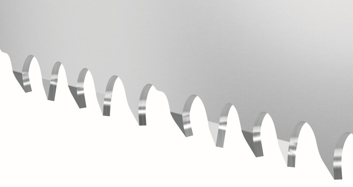 • Los niveles de triscado producen un perfil de corte multi viruta que reduce las fuerzas de corte y mejora la vida útil de la hoja.