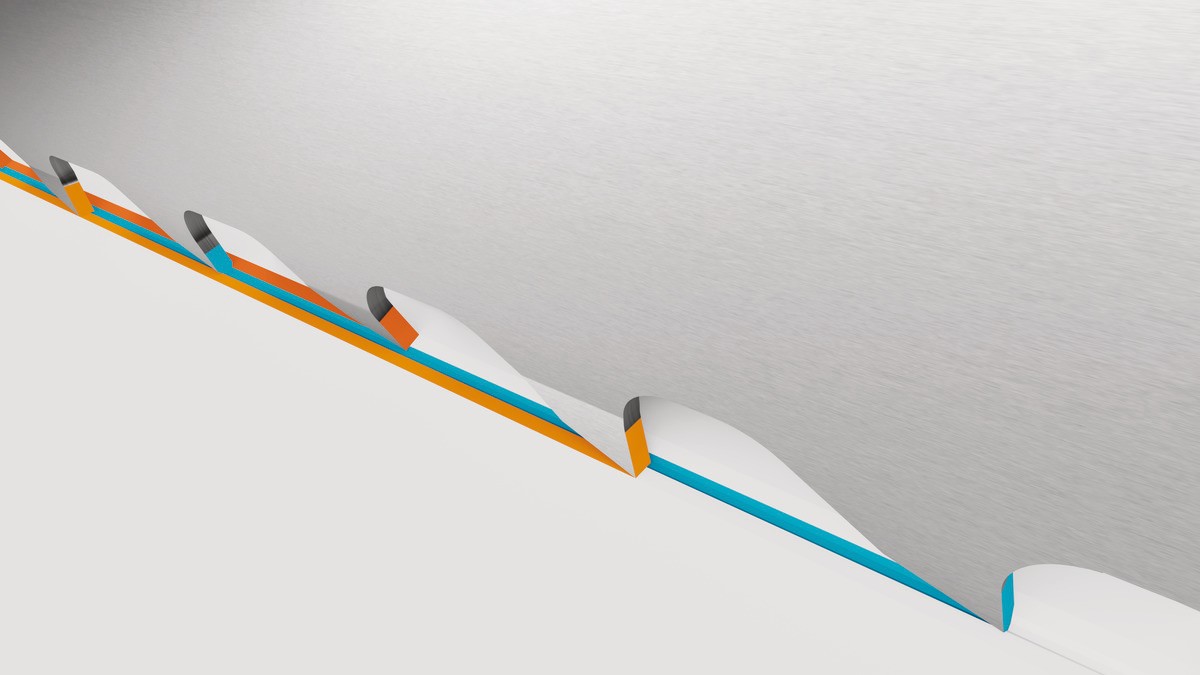 - Dentado de carburo con configuración Triple Set para agilizar el corte y facilitar el avance