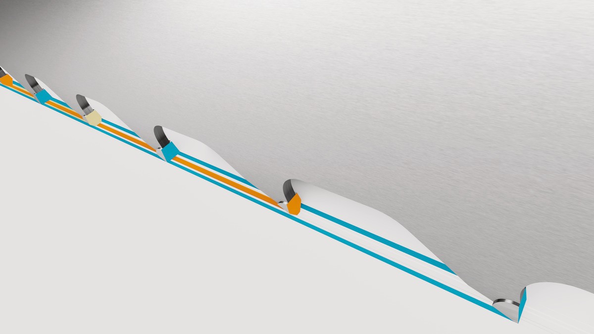 - El dentado sin triscar obtiene un acabado superior, mayor durabilidad de la sierra y reducción de segundas operaciones de mecanizado.