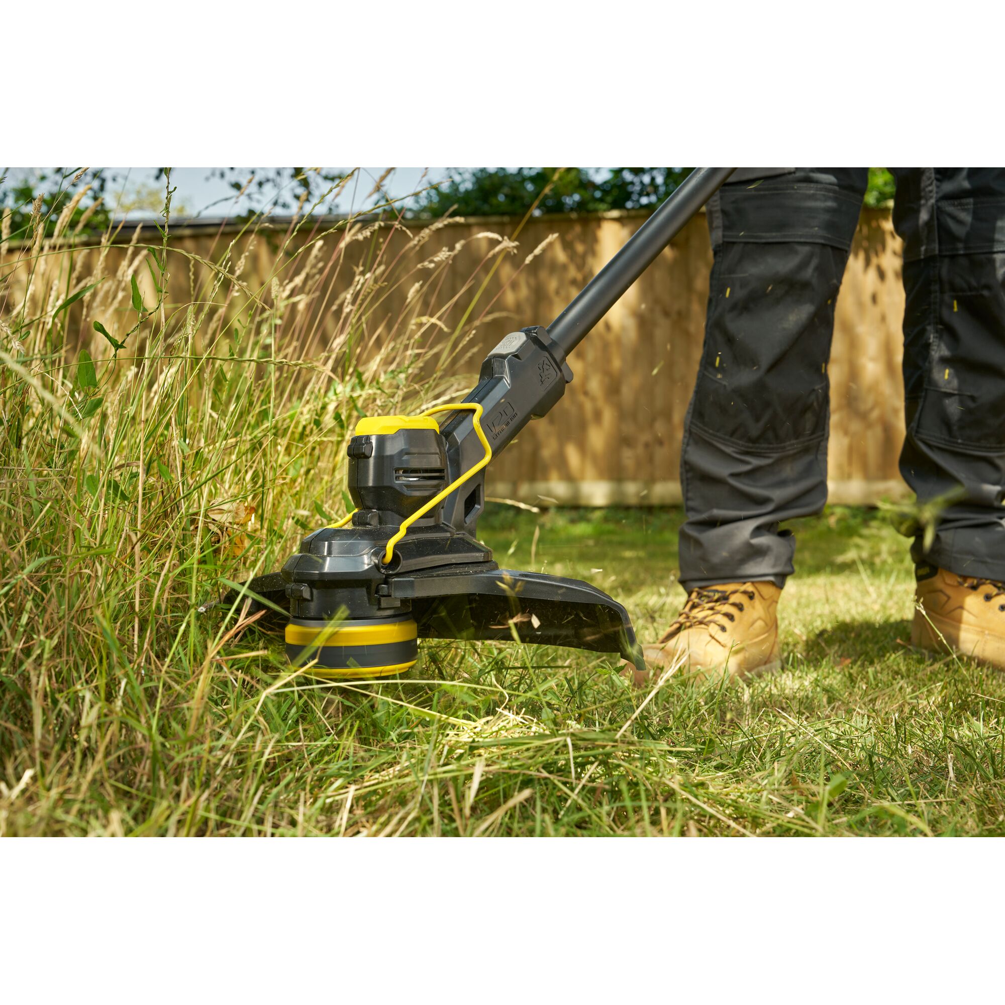 Esta segunda generación de cortabordes STANLEY® V20 de 18V y 33 cm ofrece una combinación de alto rendimiento y facilidad de uso, lo que la convierte en una herramienta indispensable para cualquier usuario profesional residencial. Diseñada ergonómicamente para un uso cómodo, la cortadora de césped está equipada con un mango auxiliar envolvente ajustable que se puede colocar a cualquier altura a lo largo del eje. Diseñada para un corte rápido y eficaz del césped, su anchura de corte de 33 cm cubre áreas medianas y grandes de forma rápida y eficiente, con el sistema de alimentación automática que alimenta el hilo según sea necesario. El hilo único de 1,6 mm garantiza un corte rápido y preciso. Para aumentar el par y el rendimiento de corte, esta versátil herramienta cuenta con una transmisión por engranajes que le permite realizar las tareas con facilidad, mientras que la velocidad variable alta/baja se puede ajustar para adaptarse al trabajo y ayuda a prolongar el tiempo de funcionamiento. STANLEY® ha diseñado esta unidad con un eje fijo para un montaje sencillo y único, por lo que está lista para funcionar en todo momento. El cabezal de corte incorpora un protector de bordes de alambre que garantiza una visibilidad total para crear bordes rectos y precisos y proteger las plantas y los árboles durante el corte. Un gancho de suspensión integrado permite guardarla de forma segura en el taller o el garaje, y es totalmente compatible con el sistema de almacenamiento STANLEY® Track Wall. Gracias al sistema de batería inalámbrica STANLEY® V20 de 18 V, la batería es compatible con todas las herramientas STANLEY® V20. Esta fiable tecnología de batería de iones de litio garantiza que no haya efecto memoria y una autodescarga mínima, por lo que la herramienta está lista para funcionar siempre que usted lo esté y garantiza un tiempo de funcionamiento excepcional. Este kit de cortabordes de 33 cm no viene con batería ni cargador.