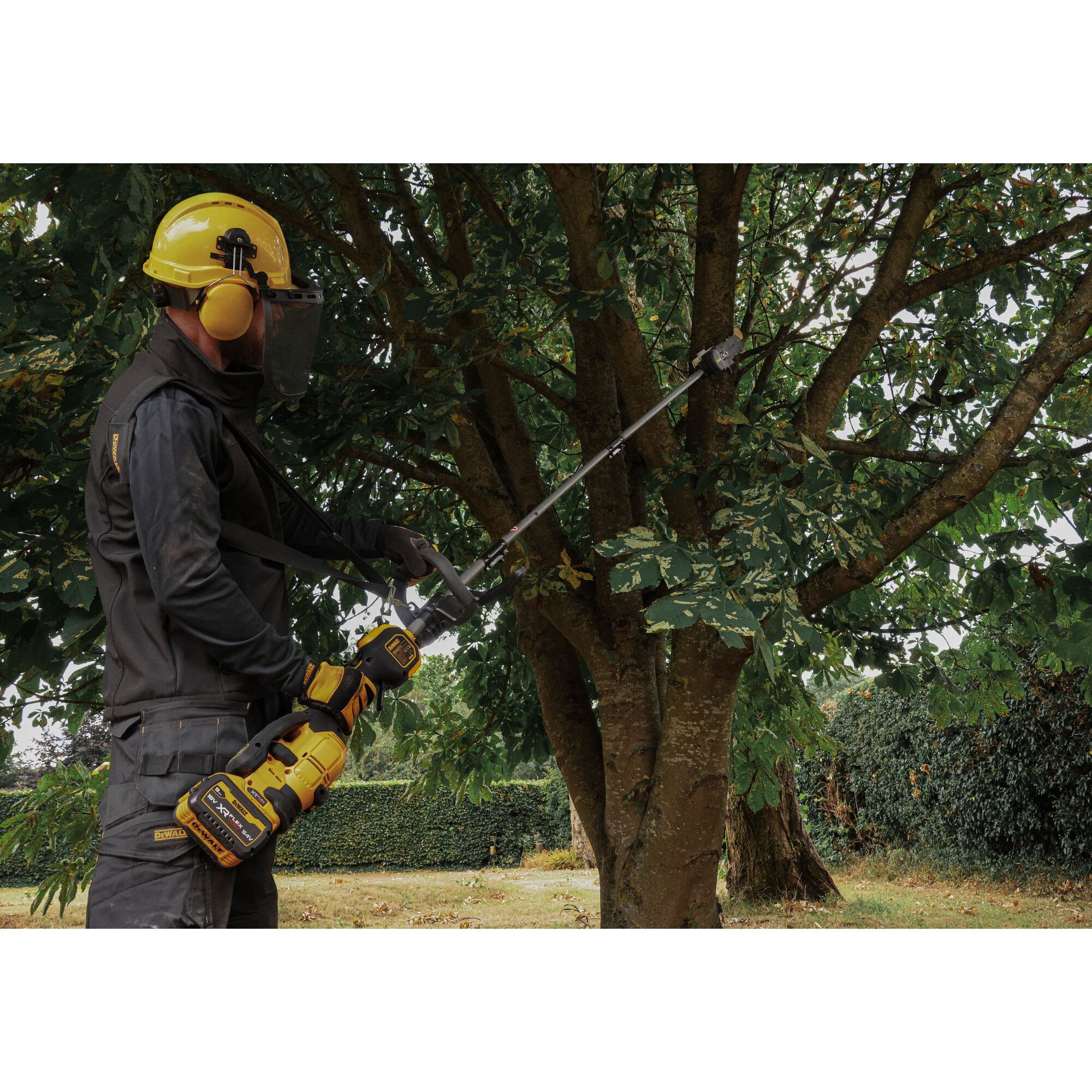 Consiga la flexibilidad y la potencia de corte que necesita para afrontar el trabajo diario con el cabezal podadora de pértiga DEWALT®. Este complemento de gran utilidad convertirá rápidamente su Multi-Herramienta (DCMAS5713) de 54 V XR FLEXVOLT® en una podadora de pértiga. Realice diversas tareas con una barra y cadena de 20 cm de bajo mantenimiento con capacidad de lubricación automática y un poste extensible para un mayor alcance. Hay disponibles cabezales intercambiables para convertirlo en otras herramientas para exteriores.
