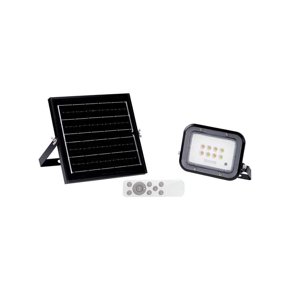 Proyector LED solar de SIMON fabricado en materiales resistentes con acabado en negro. Ofrece una iluminación CCT regulable, permitiendo seleccionar la temperatura de color según las necesidades del entorno. Cuenta con una potencia equivalente a 30 vatios y una intensidad de 500 lúmenes, proporcionando una luz eficiente y adecuada para espacios exteriores. Funciona mediante energía solar, integrando un panel fotovoltaico que permite una carga autónoma y sostenible sin necesidad de conexión eléctrica. Su protección IP66 garantiza una elevada resistencia al polvo y a chorros de agua, lo que lo hace ideal para usos en exteriores, incluso en condiciones ambientales exigentes. Incluye un soporte orientable, que permite ajustar fácilmente el ángulo de iluminación según los requisitos de instalación.