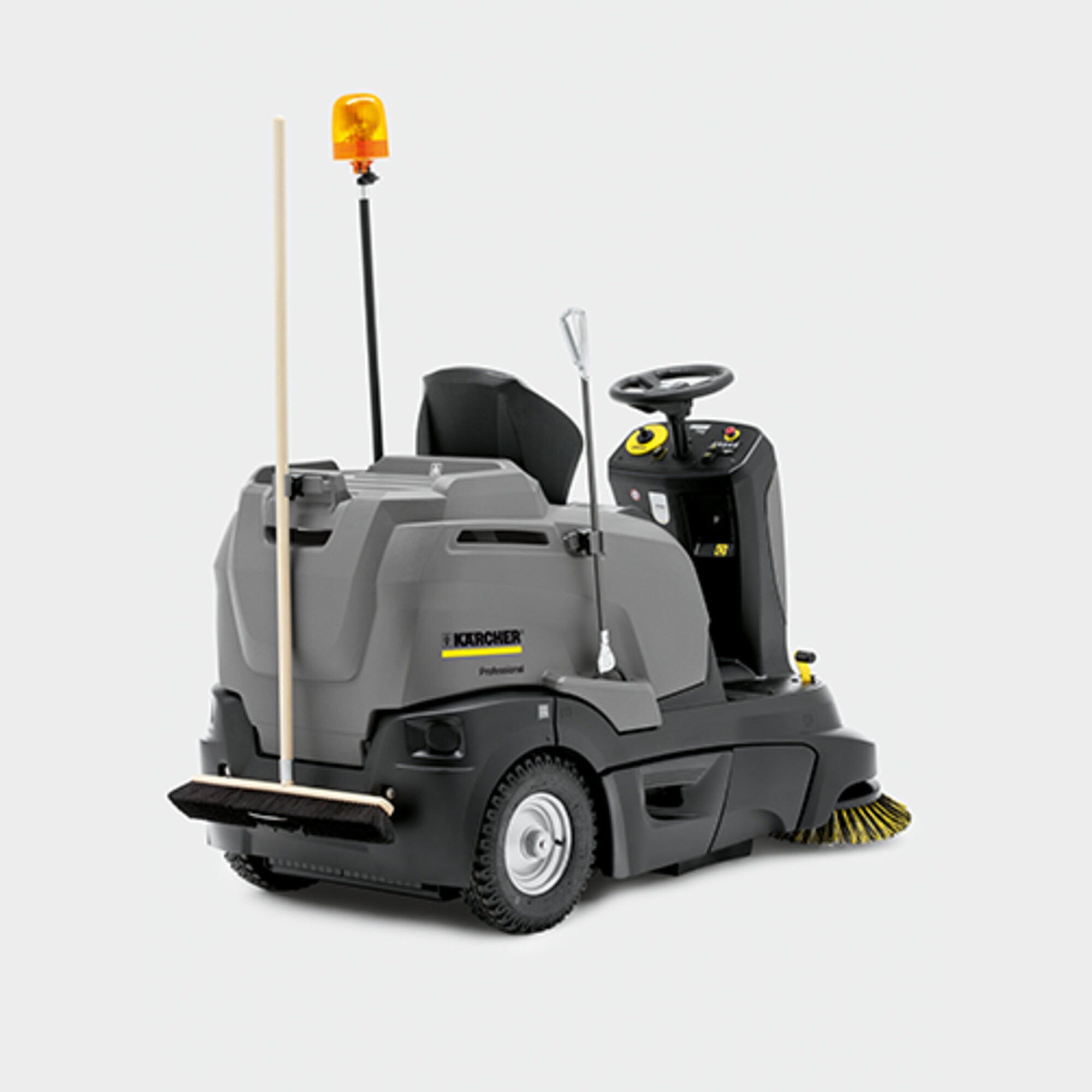 Los centros de logística, los aparcamientos o las naves de producción son los ámbitos de uso típicos de nuestra robusta barredora-aspiradora con conductor sentado a batería KM 90/60 R Bp con cepillo lateral ajustable. Incluso en los lugares más estrechos, este equipo maniobrable solventa a la perfección las tareas de limpieza más complicadas gracias a su excelente conducción. A ello también contribuye especialmente el exclusivo y altamente eficaz sistema de limpieza automático del filtro redondo, que permite un trabajo sin polvo y sin reducción de la potencia de aspiración. Es posible llevar fácilmente el resto de los utensilios de limpieza gracias a la práctica superficie de carga y al kit de accesorios Home-Base, mientras que el sistema EASY Operation permite manejar la KM 90/60 R Bp con sencillez.