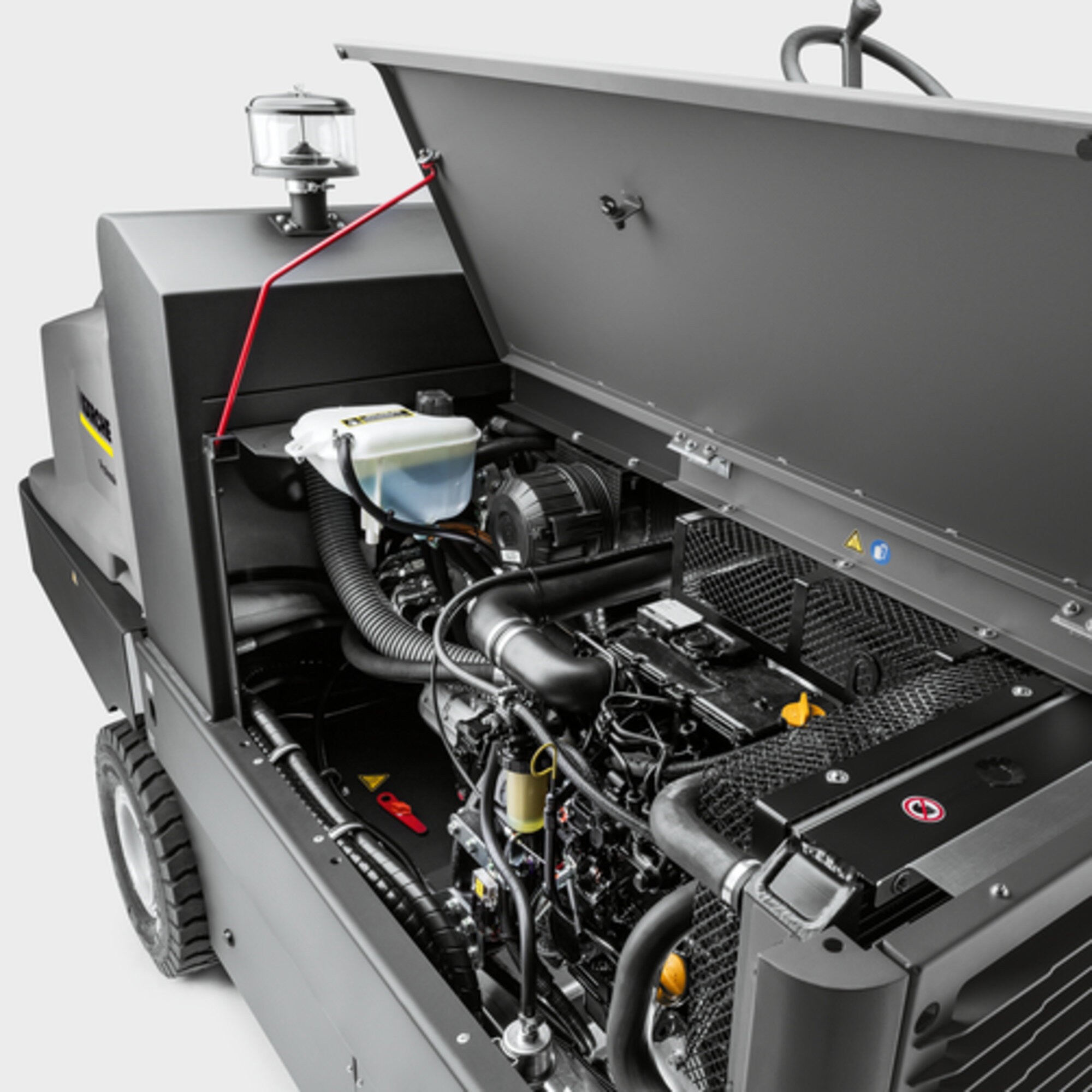 La barredora industrial KM 150/500 R Classic de larga vida útil ha sido diseñada para las tareas exigentes en empresas de materiales de construcción, empresas metalúrgicas o talleres de fundición y otros sectores donde se genera gran cantidad de suciedad. La eficaz barredora con conductor sentado se maneja de manera cómoda y sencilla mediante una palanca. El depósito de suciedad se vacía mediante un sistema hidráulico de vaciado en alto. La enorme capacidad del depósito de suciedad alcanza los 500 litros y permite largos períodos de trabajo. Gracias al robusto chasis de acero con agente anticorrosivo múltiple, el equipo está perfectamente equipado para el uso en las condiciones más difíciles. El accionamiento hidráulico del eje trasero permite una buena maniobrabilidad y facilidad de uso incluso en espacios reducidos. Otra característica es el sistema Flexible Footprint que garantiza un barrido óptimo sobre diferentes superficies con un desgaste reducido de los cepillos. En caso de reparación o mantenimiento es posible acceder fácilmente a los componentes técnicos. Los neumáticos estándar de goma maciza evitan los parones de trabajo por pinchazos y permiten barrer sobre todas las superficies.