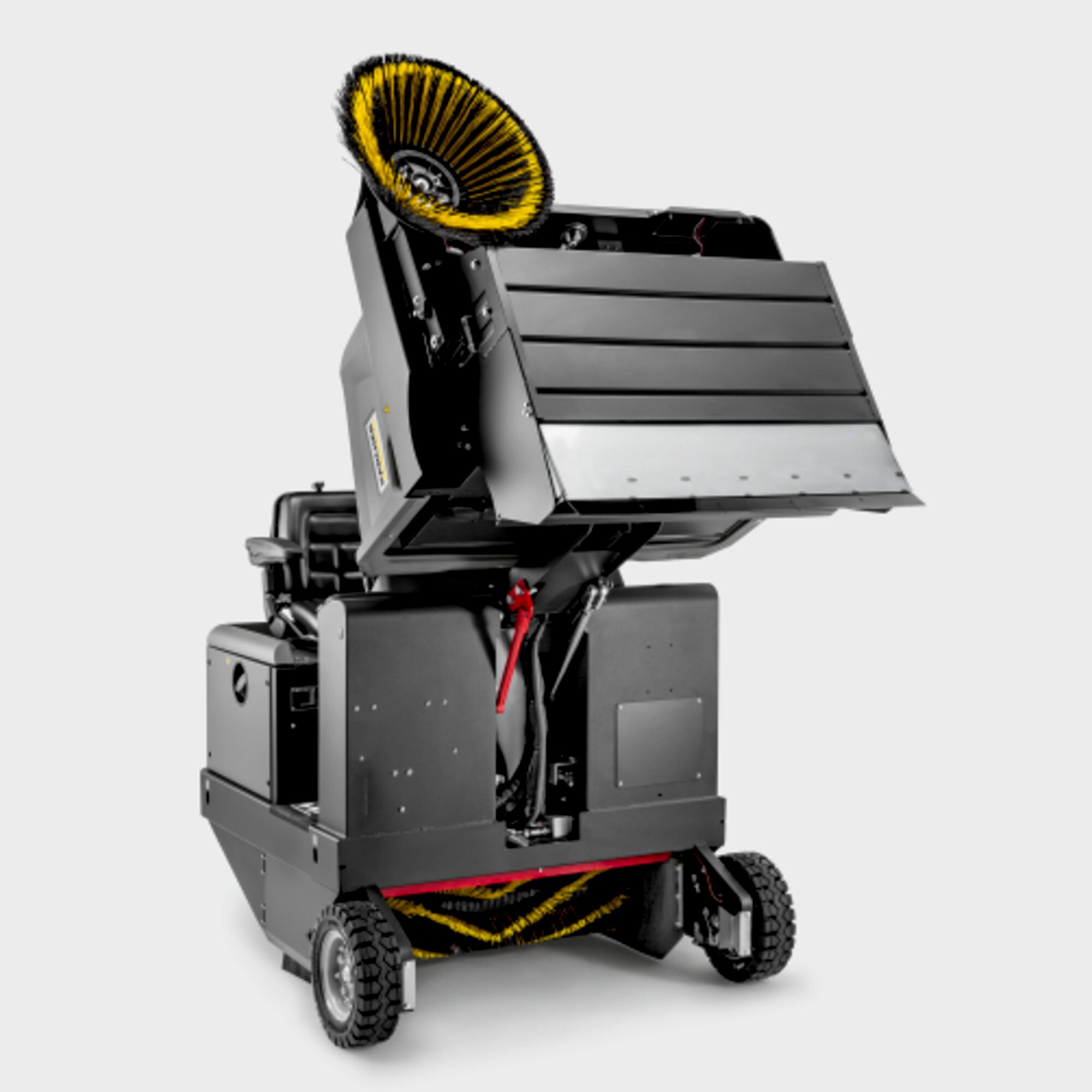 Motor de tracción totalmente hidráulico, además del accionamiento de cepillos laterales y el cepillo cilíndrico principal de barrido