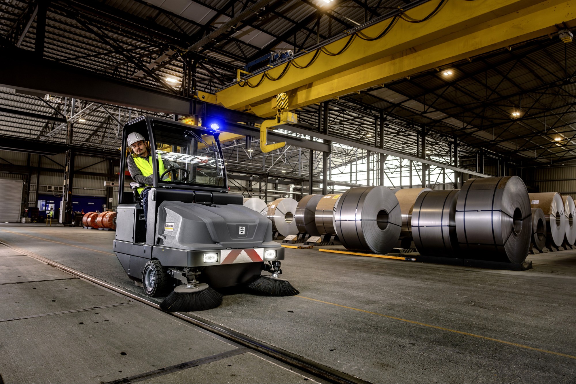 Robusta, de larga vida útil e ideal para situaciones con gran cantidad de suciedad y polvo en interiores y exteriores: la barredora industrial KM 130/300 R I Bp de Kärcher. Su gran depósito para la suciedad y su potente motor permiten operaciones de limpieza de hasta 3,5 horas, mientras que el robusto armazón metálico y el sencillo manejo mediante palanca se adaptan perfectamente a las duras condiciones de los entornos industriales. Equipada de serie con un potente sistema de filtro de bolsa y la regulación de la velocidad de giro opcional del cepillo lateral para un guiado óptimo del material de barrido hasta el cepillo cilíndrico de barrido con un levantamiento de polvo mínimo, la KM 130/300 R I Bp garantiza un barrido prácticamente sin polvo, incluso en entornos con gran presencia de polvo. Para una mayor facilidad de uso, el equipo también cuenta con un cómodo asiento, prácticos compartimentos y testigos LED del estado de funcionamiento. Las ruedas de goma maciza a prueba de pinchazos, las luces LED delanteras y una baliza de advertencia garantizan la seguridad en el entorno de trabajo inmediato. Hay otros accesorios disponibles que pueden aumentar aún más la seguridad y convertir a este equipo en un especialista de la limpieza. En el equipo de serie no se incluyen las baterías y el cargador.