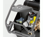Con una presión de trabajo de hasta 500 bar, este equipo elimina incluso la suciedad persistente. El robusto diseño de la Cage lo hace especialmente estable: se puede cargar con grúa, además, los componentes están protegidos por todos lados. Muchas otras ventajas hacen de este equipo la primera opción para uso profesional. Práctico y cómodo: gracias al portalanzas y al gancho integrado para la manguera, el equipo siempre tiene sus accesorios a punto. El contador de horas de servicio indica los tiempos de marcha exactos de la bomba. Almacenamiento seguro: accesorios y herramientas se guardan en un compartimento protegido. Fácil de transportar: el principio de carretilla para sacos permite transportar los equipos más fácilmente que los equipos de cuatro ruedas, sobre todo en terreno impracticable, como en las obras. Fiable y segura: la bomba de cigüeñal de máximo rendimiento KÄRCHER proporciona la presión necesaria. Una protección opcional contra falta de agua protege tanto al usuario como a la bomba.